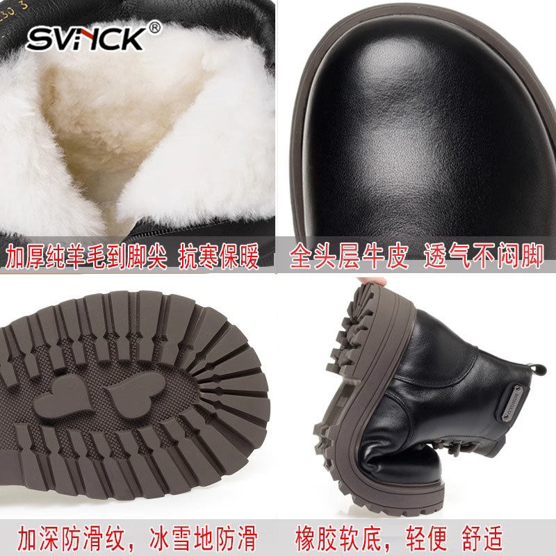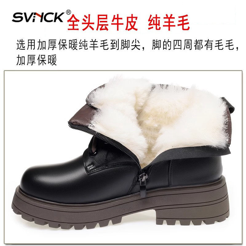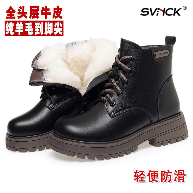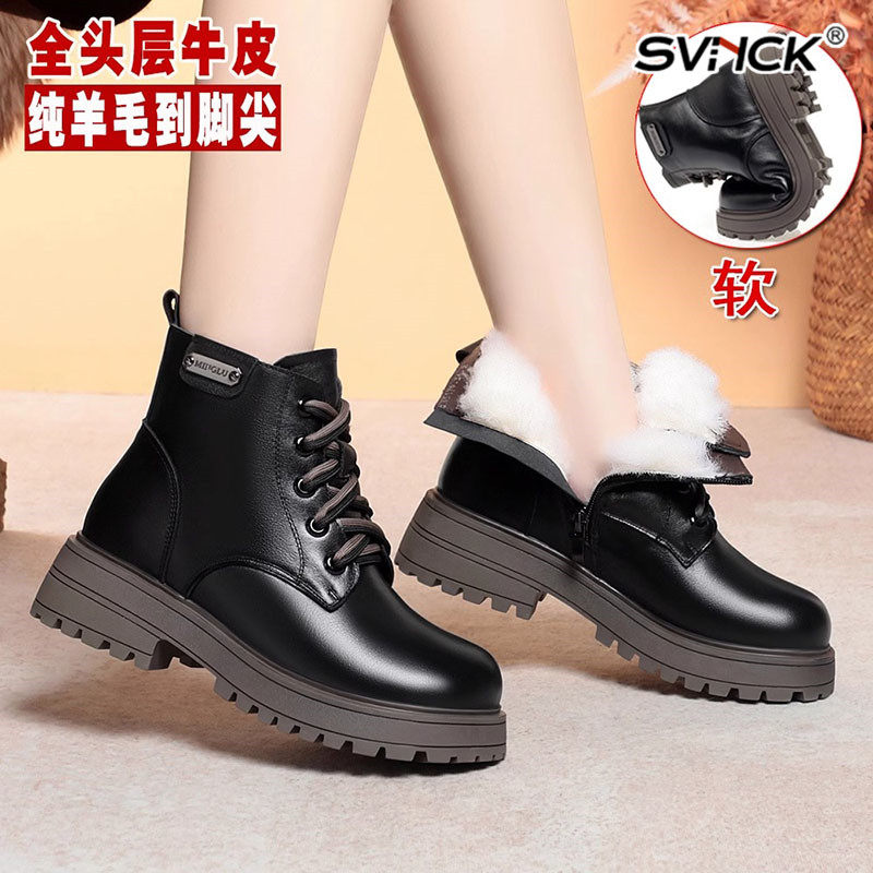 真皮马丁靴女士秋冬新款棉鞋加绒加厚羊毛皮鞋防滑增高厚底雪地靴