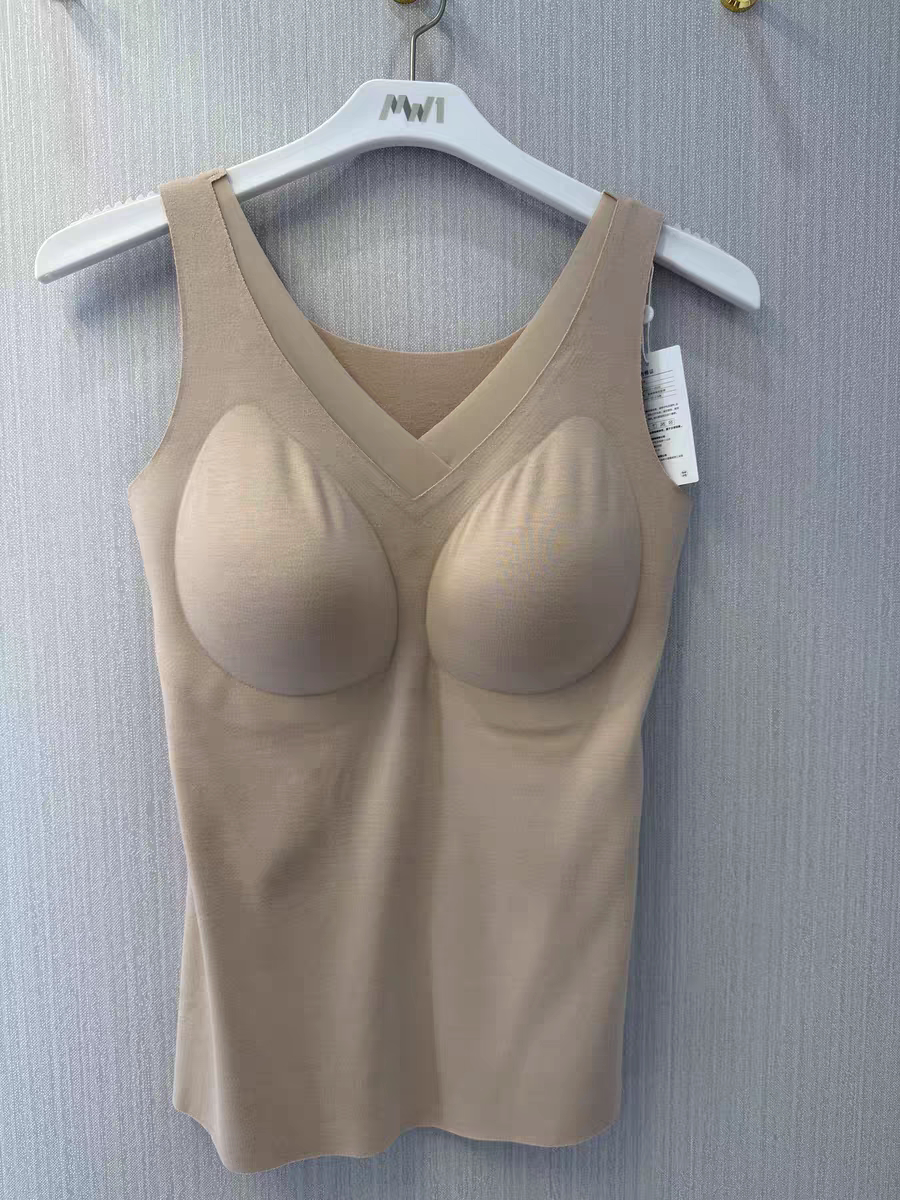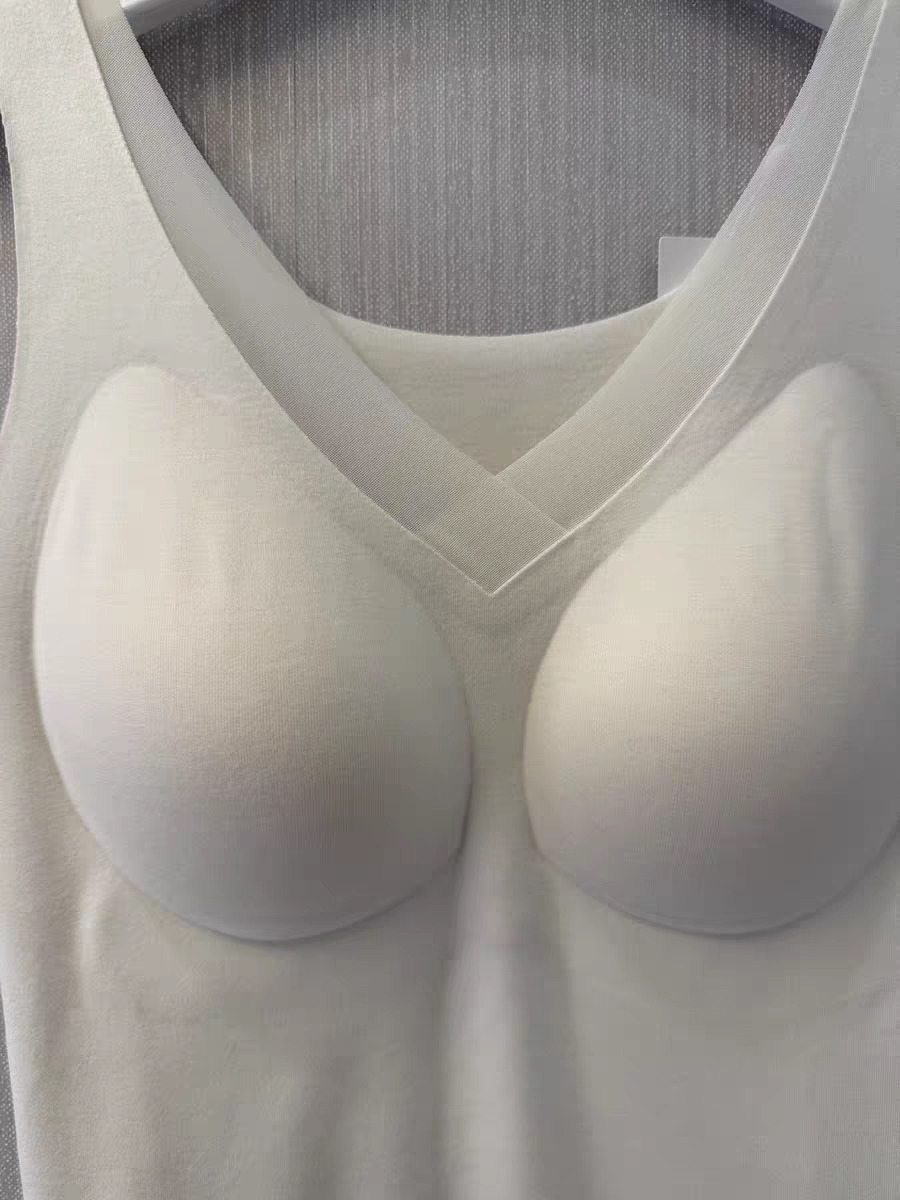 秋冬新款女士V领无痕芒果杯中厚带罩杯保暖背心20210630