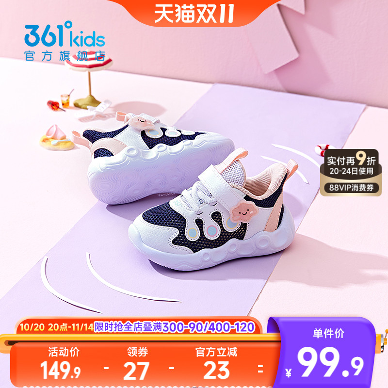 361度童鞋宝宝网鞋女童鞋子夏季幼儿园网面透气幼童学步儿童凉鞋