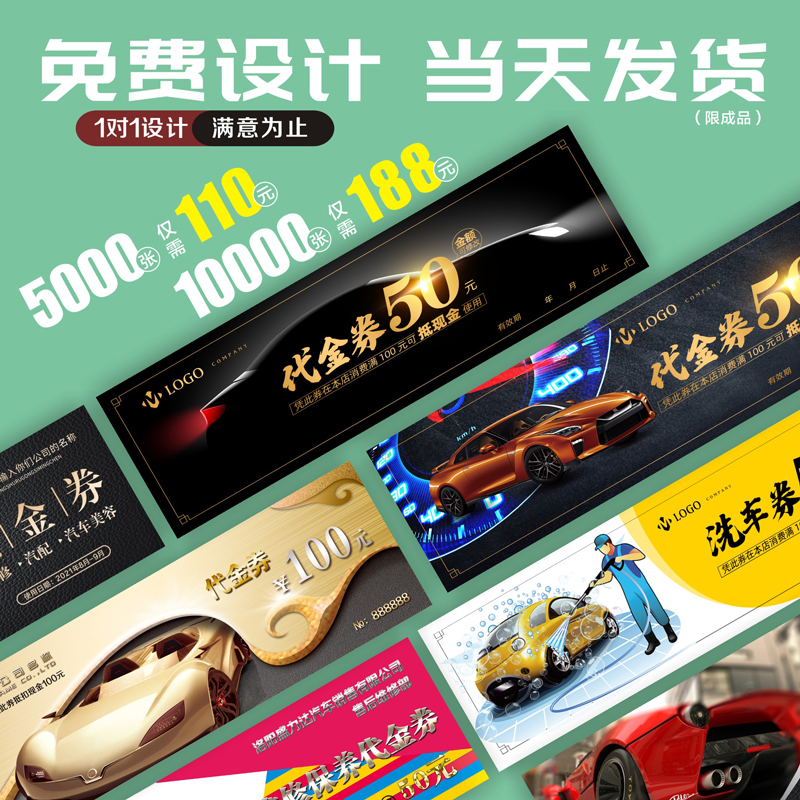 洗车卡定制汽车美容代金券印刷4S保养卡券订制汽修厂优惠券印刷