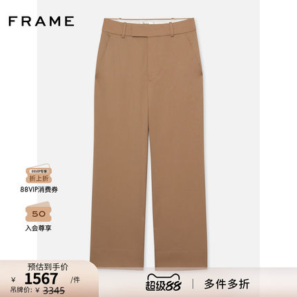 【新款】FRAME女士卡其色休闲窄腿直筒西裤