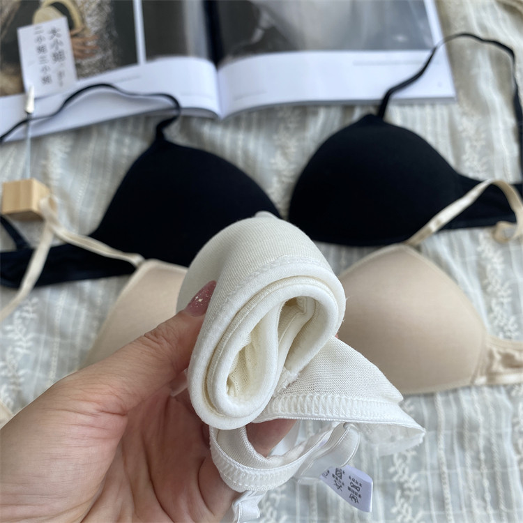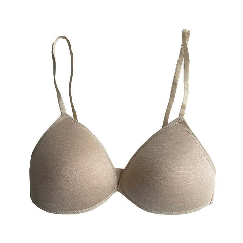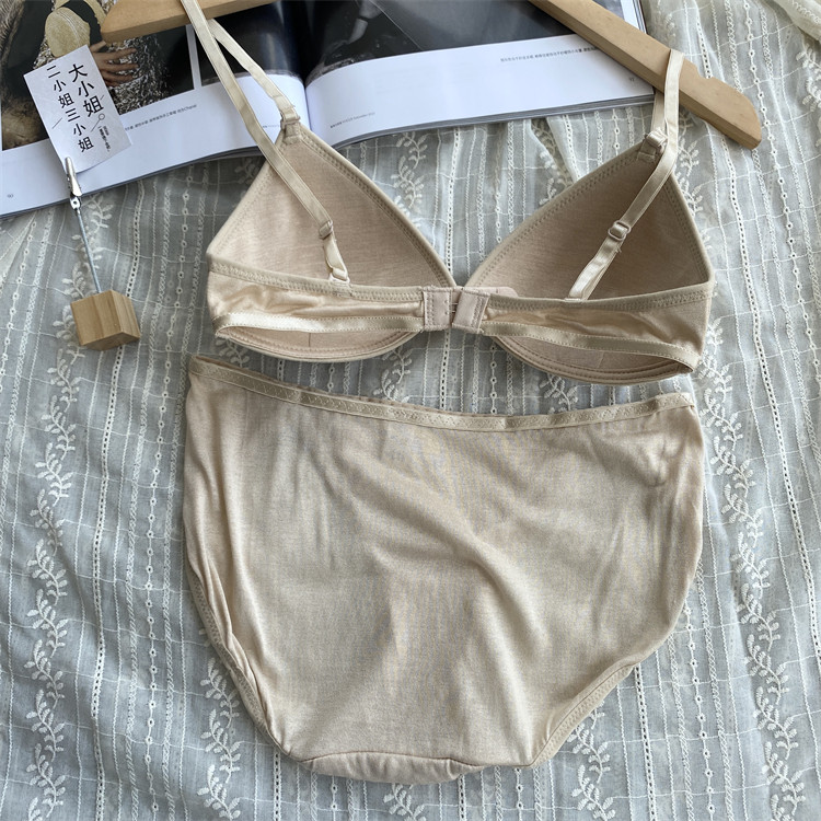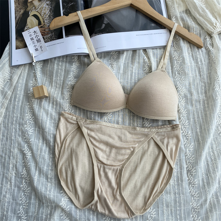 法式100%桑蚕丝性感三角杯 无钢圈真丝亲肤显胸大文胸+内裤套装