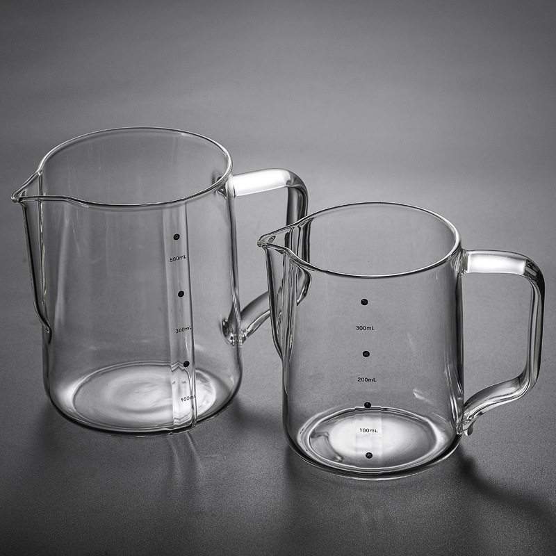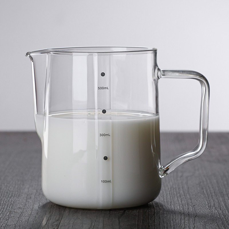 透明玻璃拉花缸奶泡杯子尖嘴打奶缸带刻度拉花壶咖啡拉花杯量杯