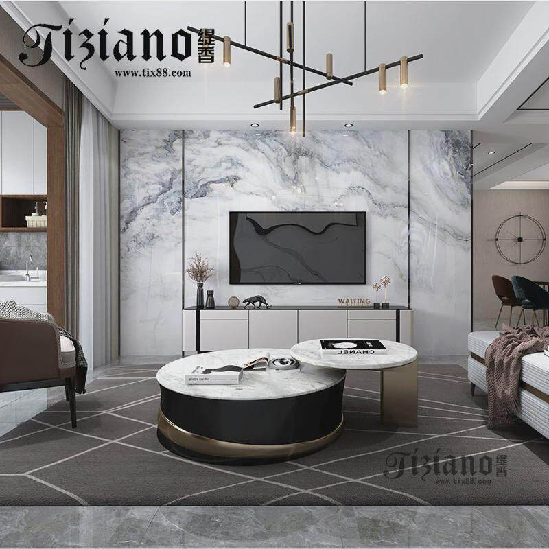 新中式大理石电视背景墙客厅1200*2700瓷砖大板中式山水画背景墙