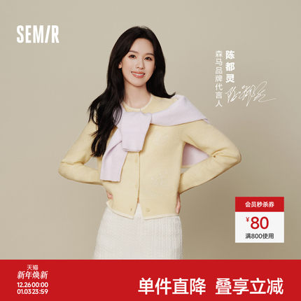 陈都灵同款森马针织衫女冬季短款绣花毛衣假两件2025新款小众上衣