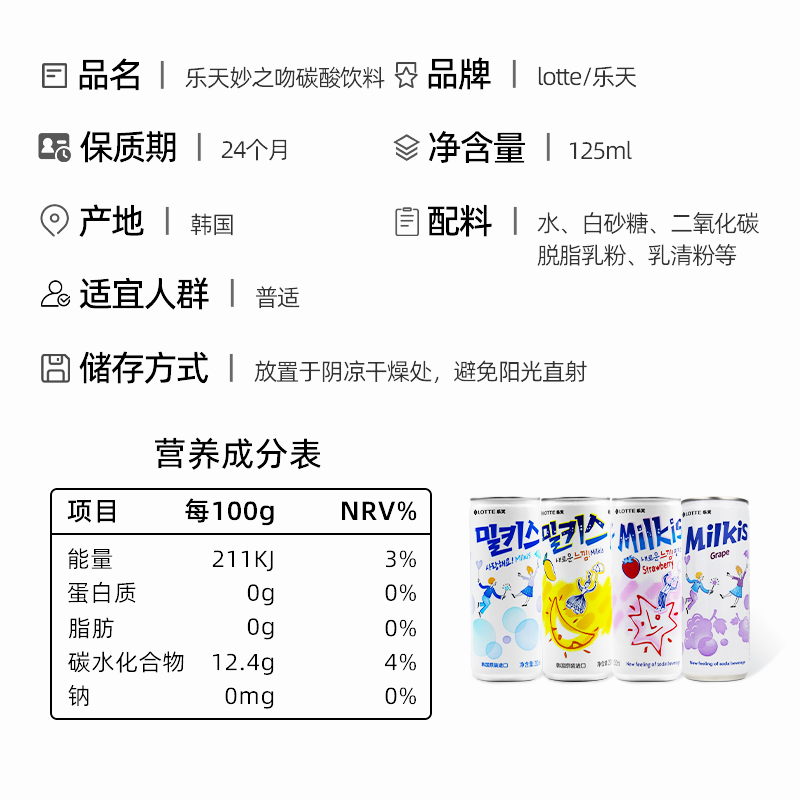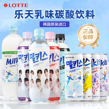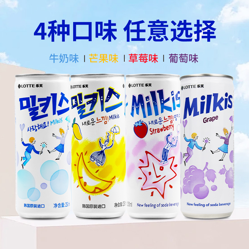 LOTTE乐天韩国进口妙之吻乳味碳酸饮料牛奶味罐装乳酸菌汽水饮品