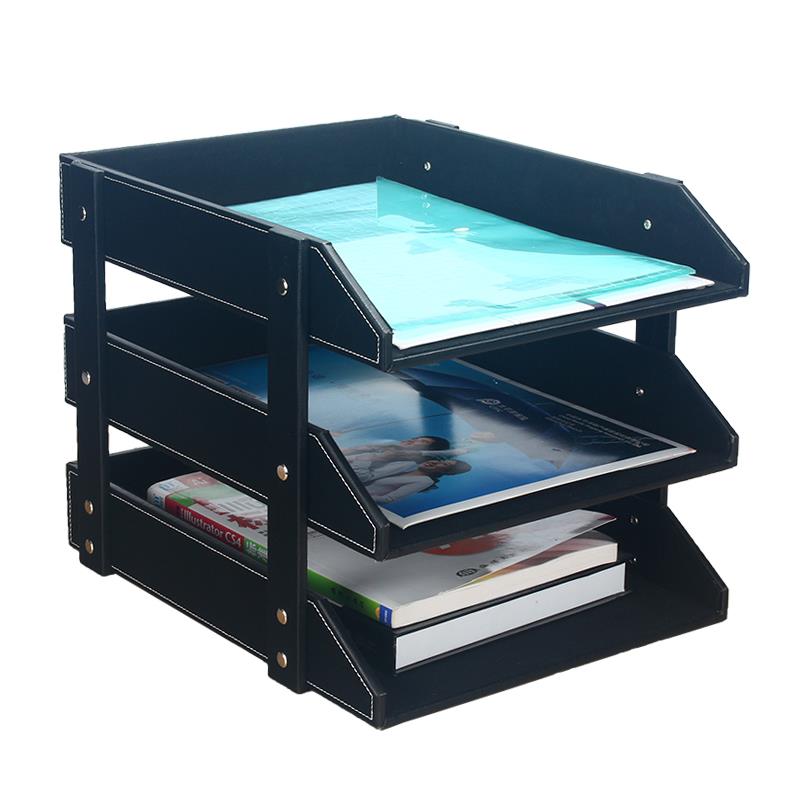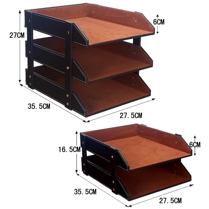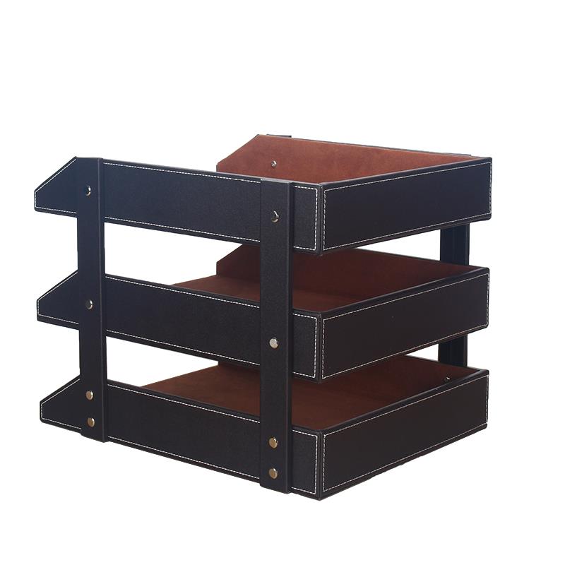 创意皮革三层a4文件架夹多功能多层资料架子办公室桌面收纳盒木质