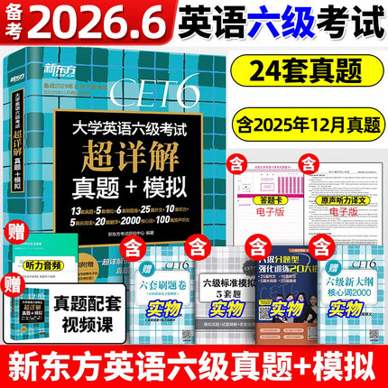 新东方英语六级真题试卷备考2026年6月大学四六级考试历年超详解真题模拟词汇单词 阅读理解听力翻译写作文预测专项训练资料cet46