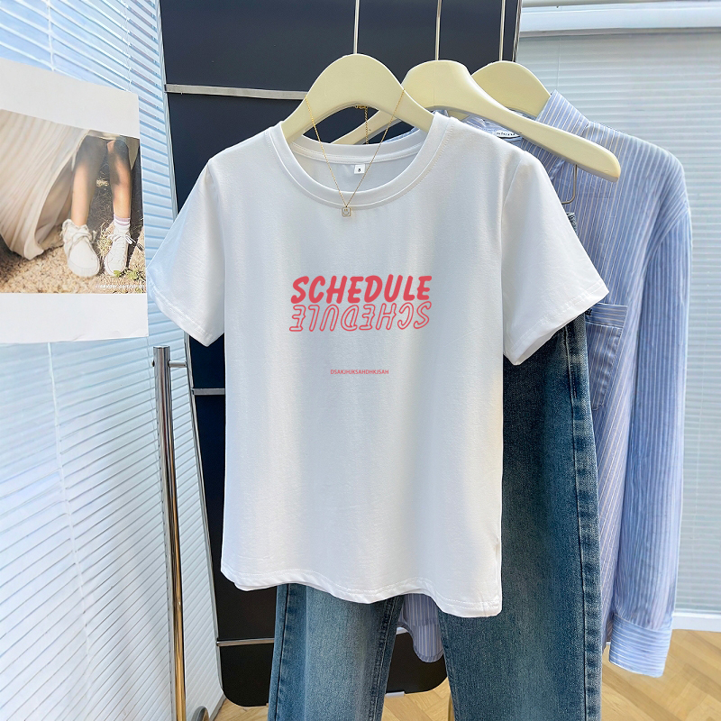 粉色元气字母短袖t恤女韩版正肩纯棉半袖夏新款2025超火减龄上衣