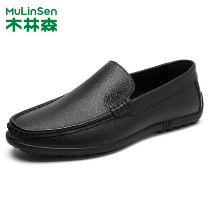 木林森男鞋豆豆鞋头层牛皮乐福鞋