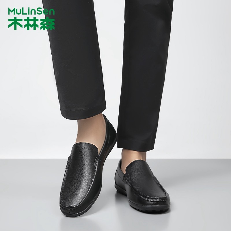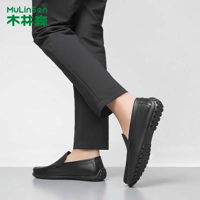 木林森男鞋2025秋冬新款柔软舒适豆豆鞋头层牛皮男士一脚蹬乐福鞋