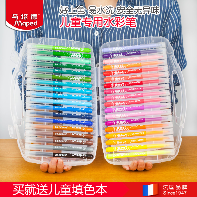法国MAPED马培德水彩笔套装儿童可水洗彩色画笔24色小学生图画彩笔36色美术绘图工具初学者涂鸦笔填色笔盒装