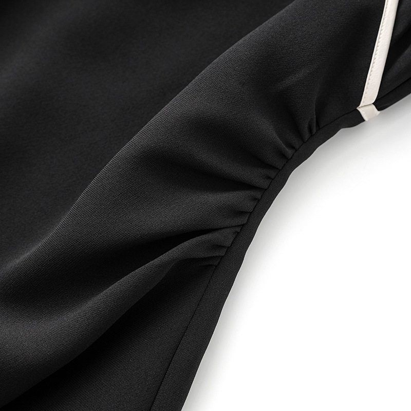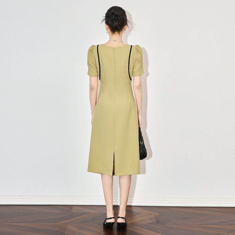 2025年春季新品法式优雅设计感泡泡袖端庄高级感撞色收腰连衣裙