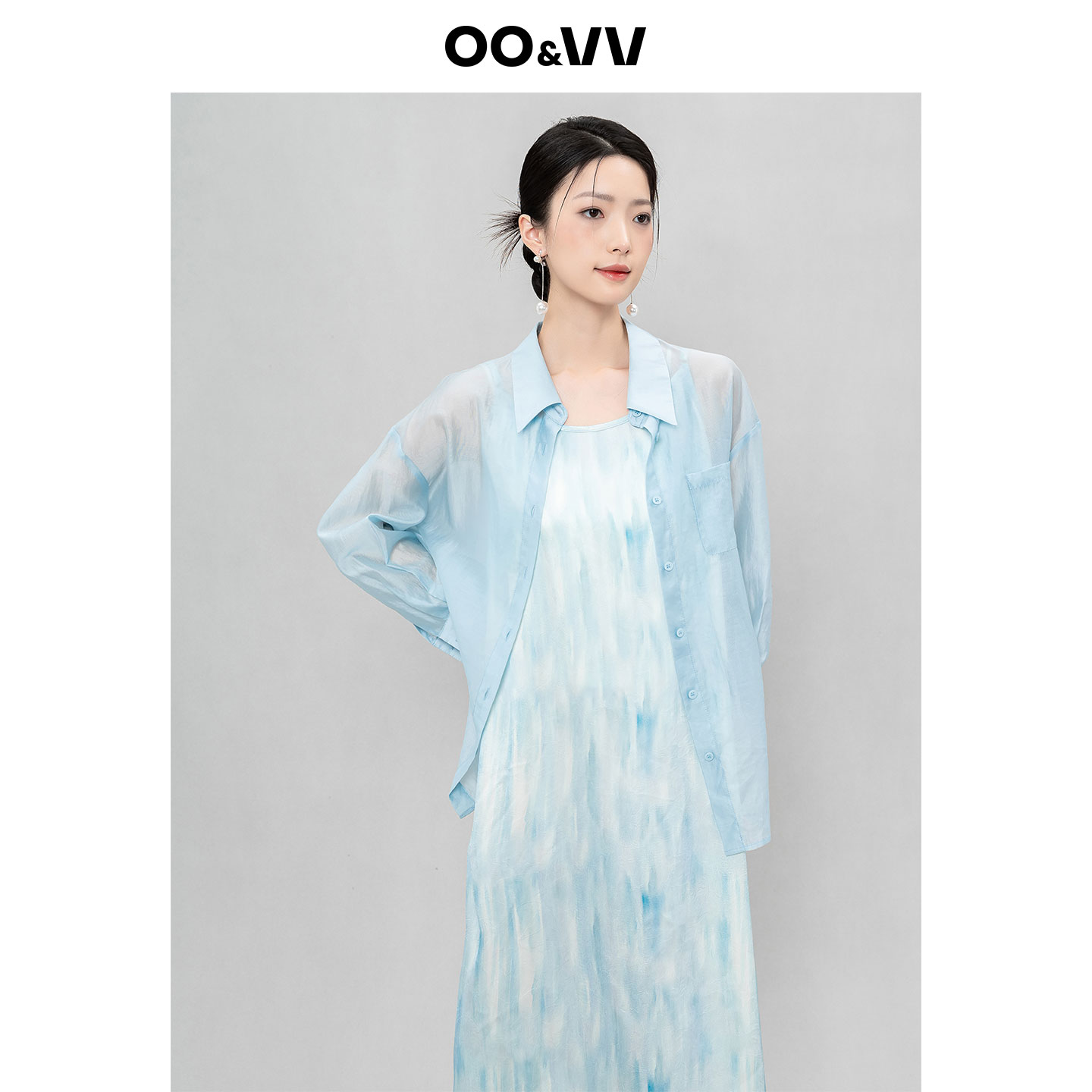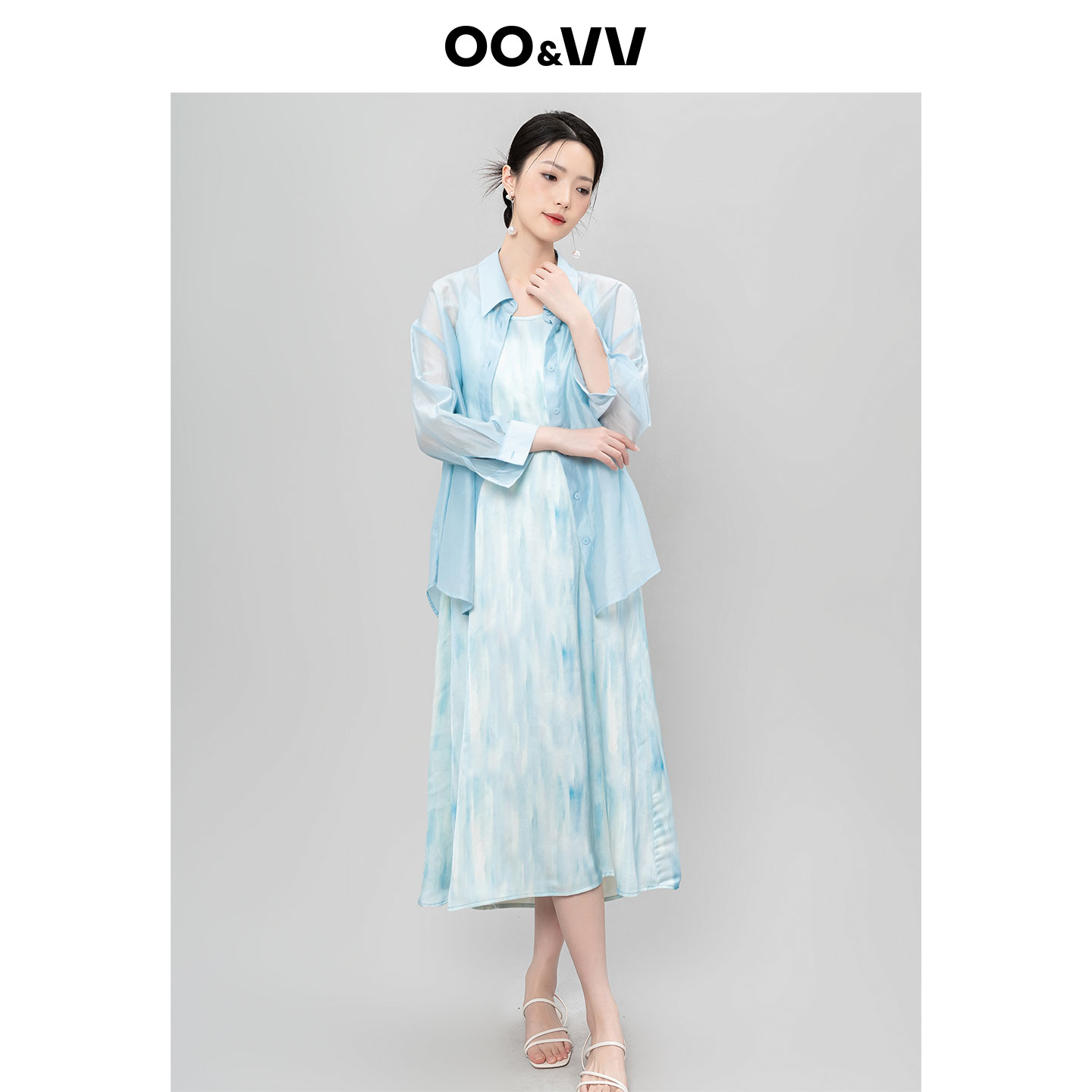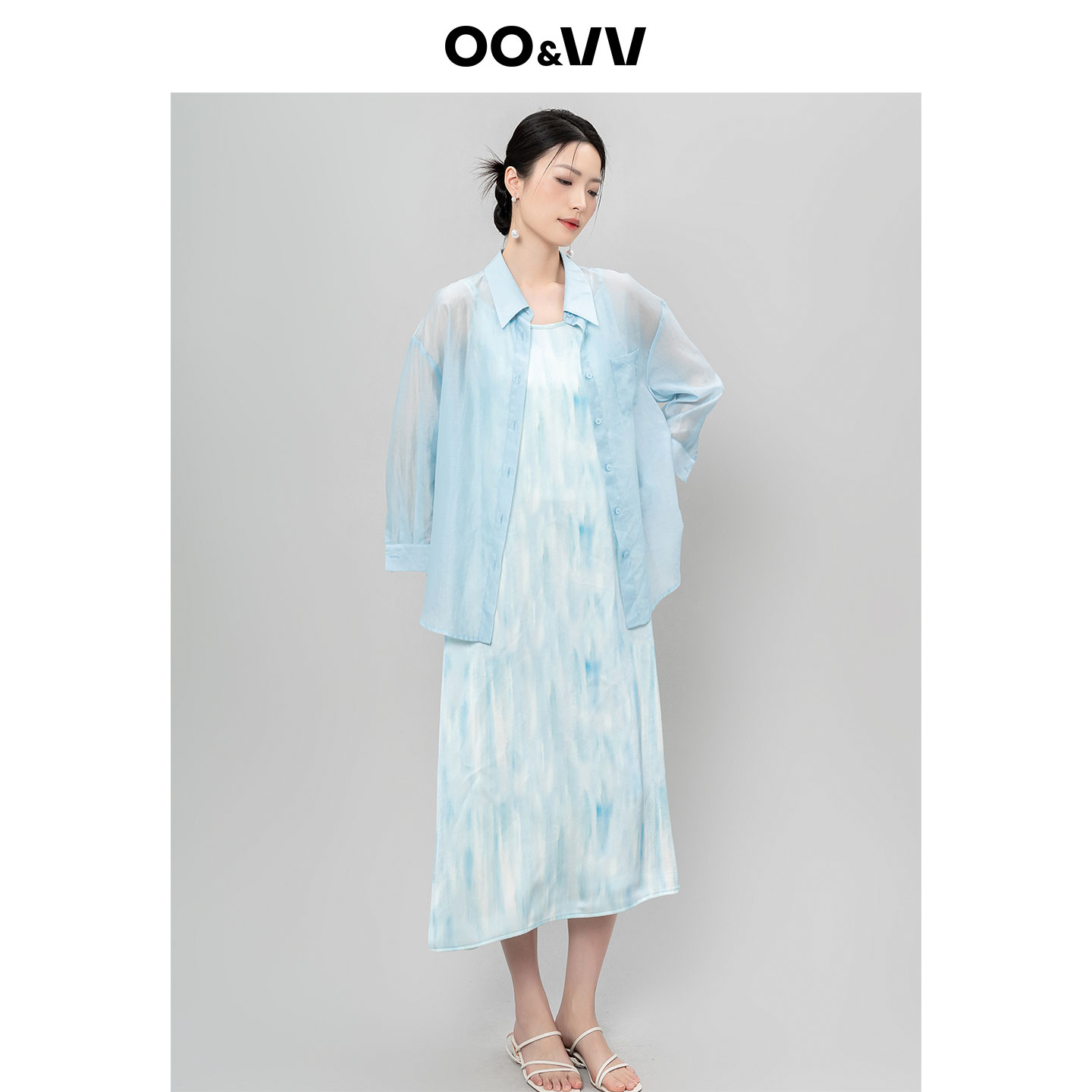 oo&vv晕染吊带连衣裙+长袖衬衫两件套女2025夏新款天丝休闲套装裙