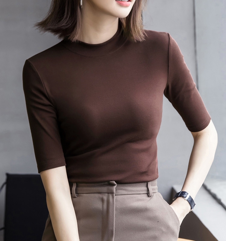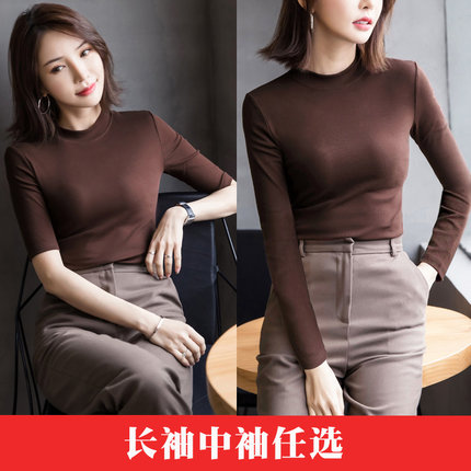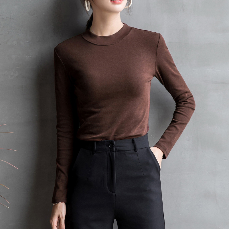 2025新款纯色半高领打底衫女 秋冬内搭修身显瘦上衣百搭长袖t恤女