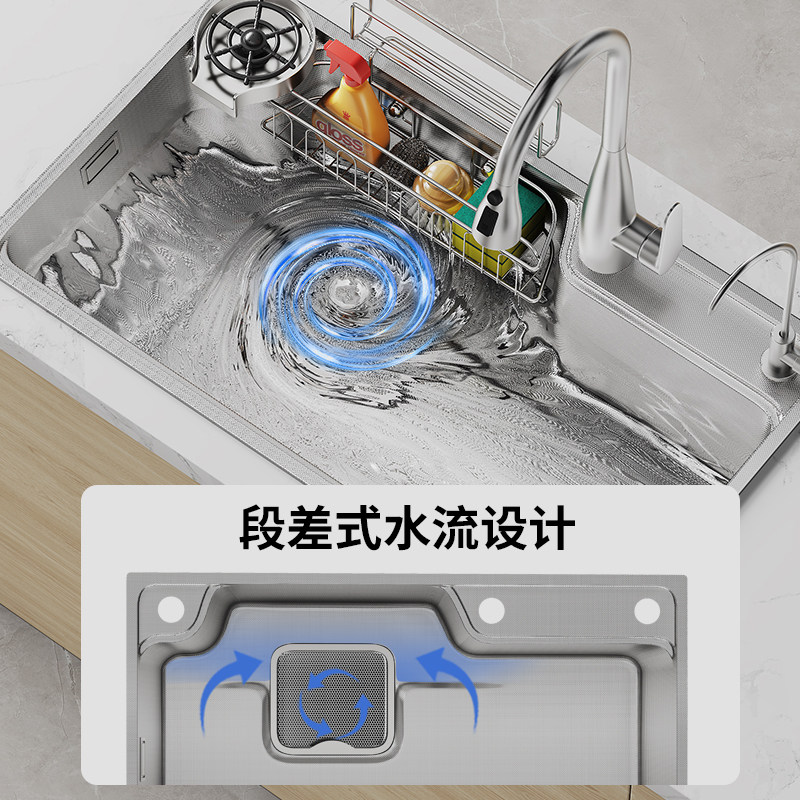 OUPAI日式加厚厨房大单槽纳米飞雨水槽洗菜盆304不锈钢家用洗碗池