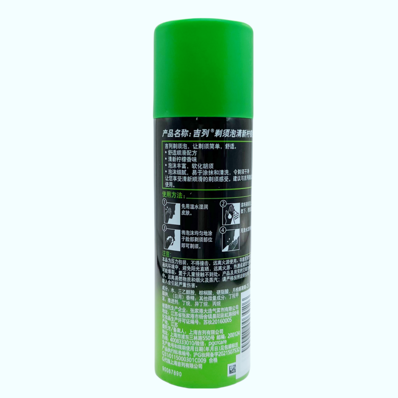 吉列手动剃须刀泡沫男刮胡泡刮胡膏啫喱须膏剃毛膏清新柠檬210g