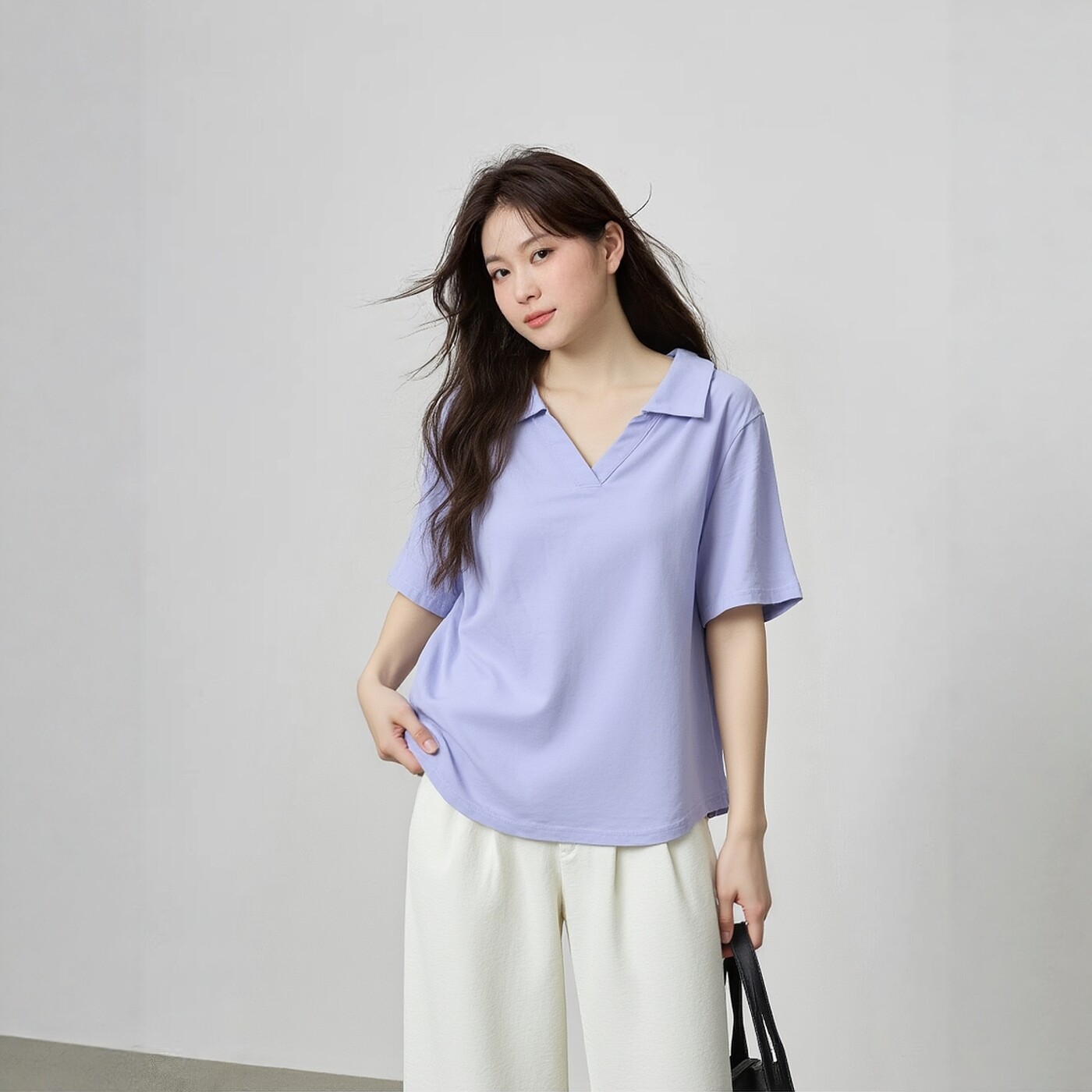 大码女装春夏POLO领短袖纯棉针织衫上衣巨显瘦正肩200斤胖妹MMT恤