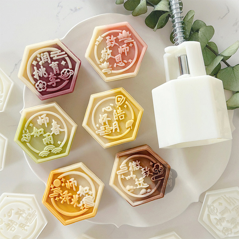 50g63g六边形教师节礼物diy糕点模 谢师宴感谢施恩中秋节月饼模具