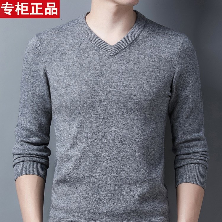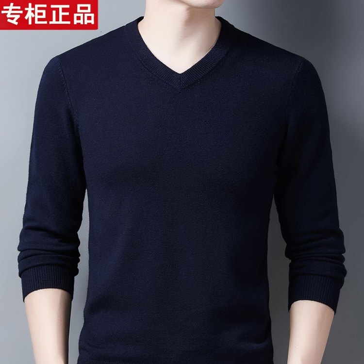 鄂尔多斯市100纯羊毛衫男秋冬V领加厚毛衣鸡心领针织羊绒打底衫潮