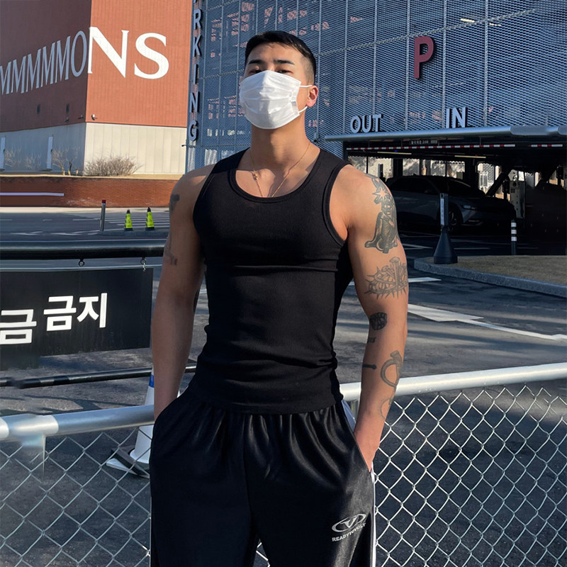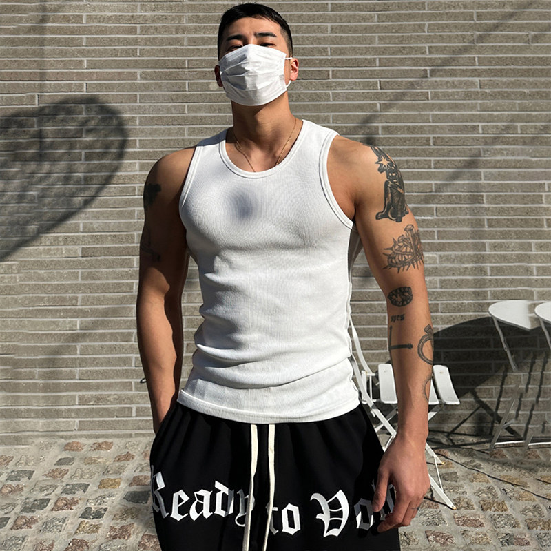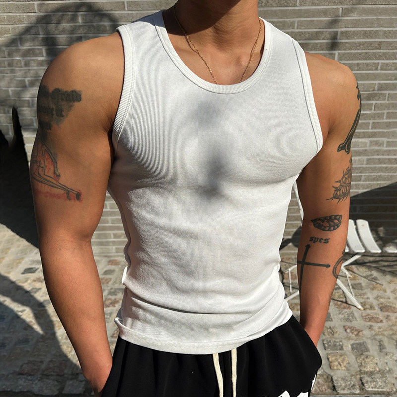 元本 夏装纯色修身男士背心性感潮流紧身打底无袖T恤简约跨栏汗衫