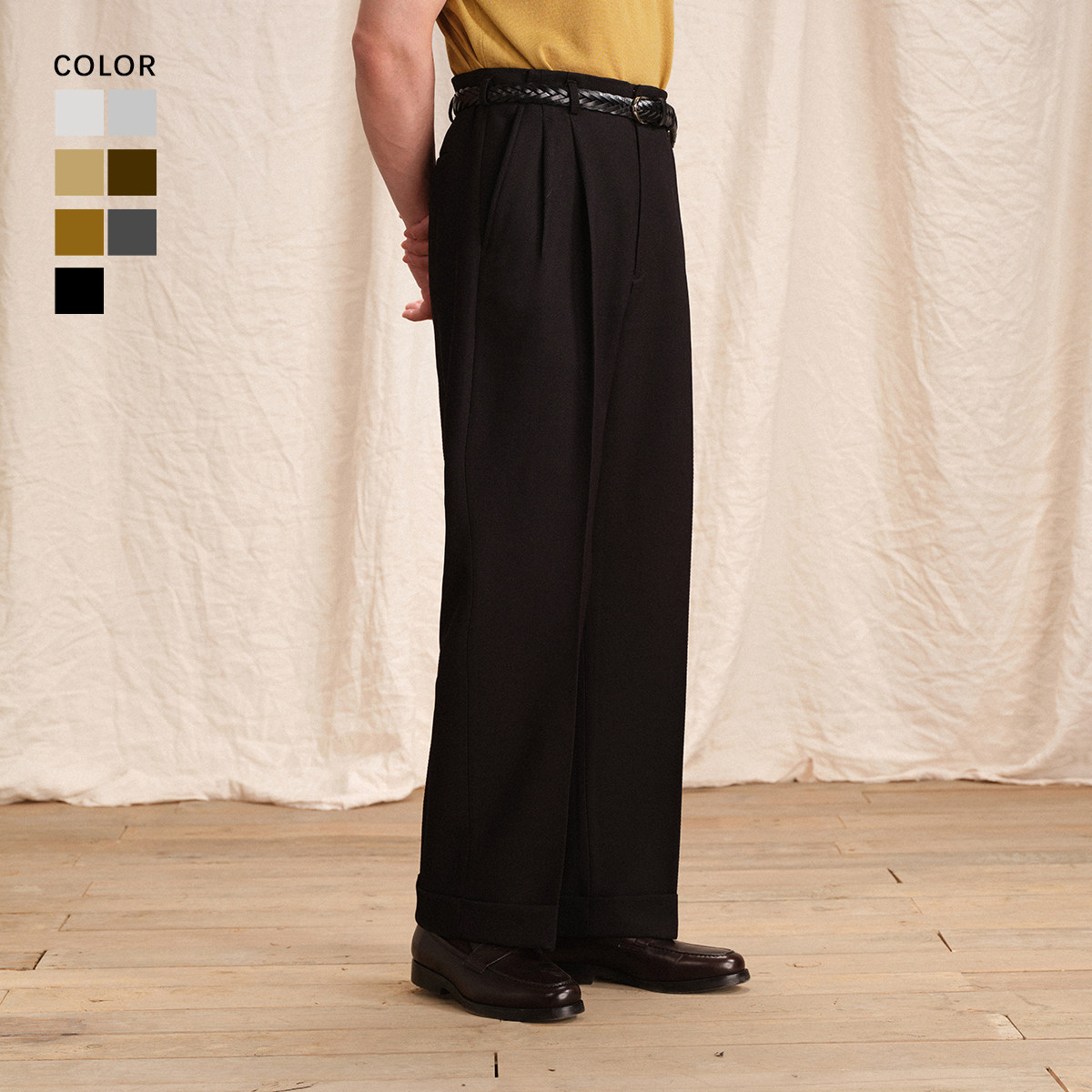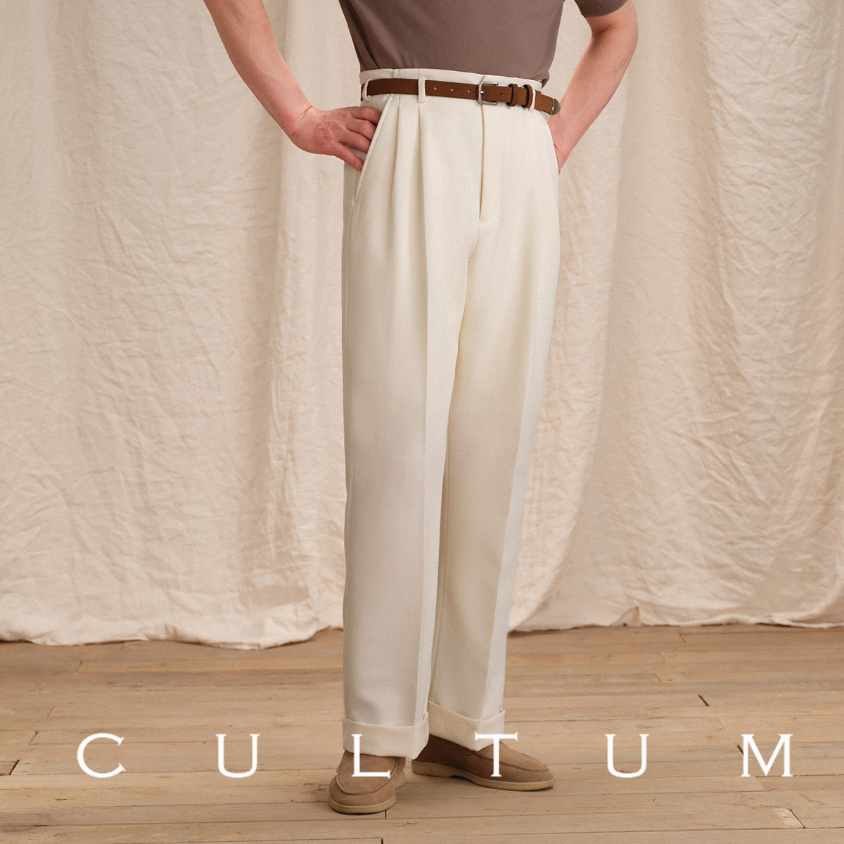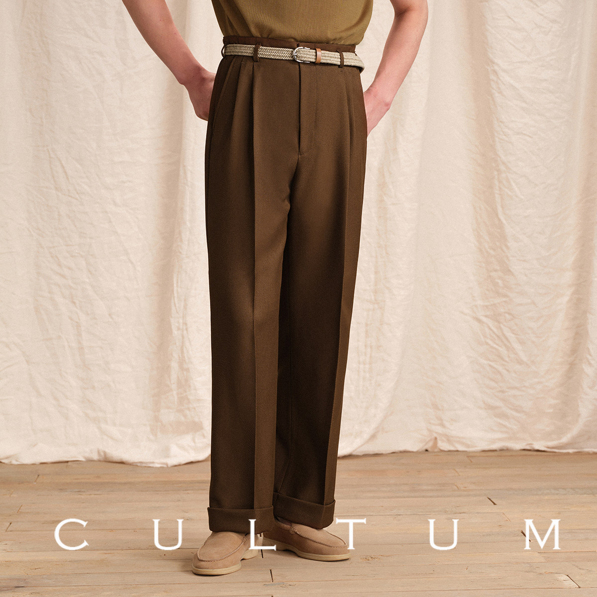 CULTUM精纺斜纹双褶西裤男复古休闲好莱坞裤西装裤
