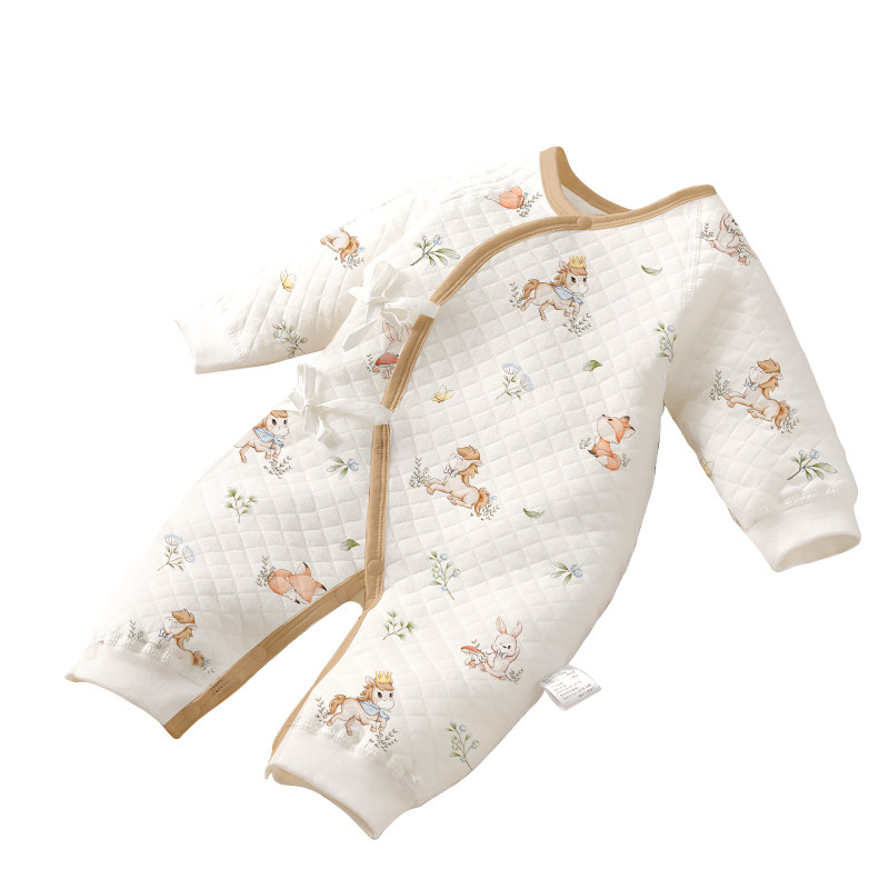 婴儿连体衣秋冬季纯棉夹棉男女宝宝衣服新生儿哈衣爬服睡衣2025款