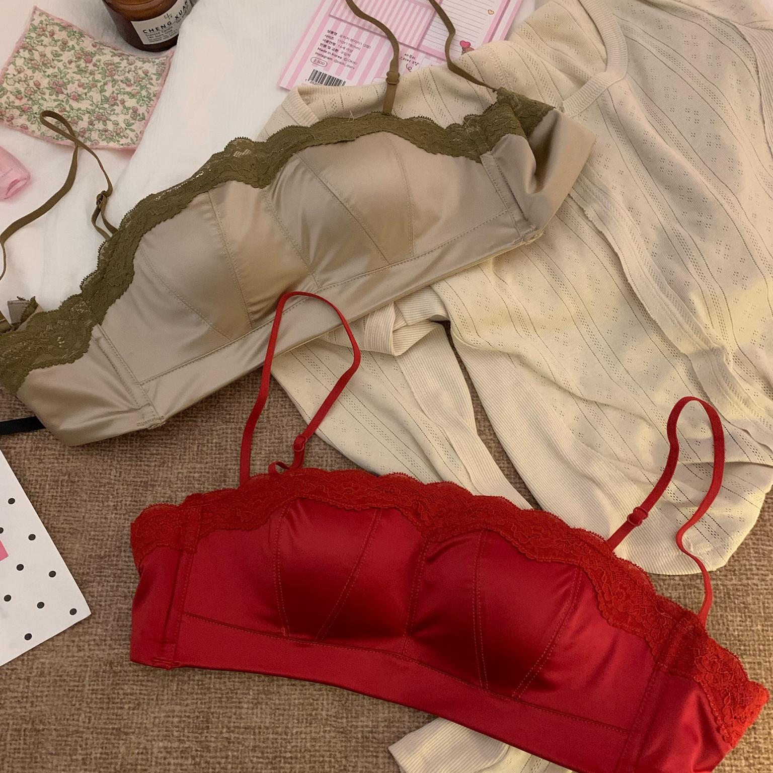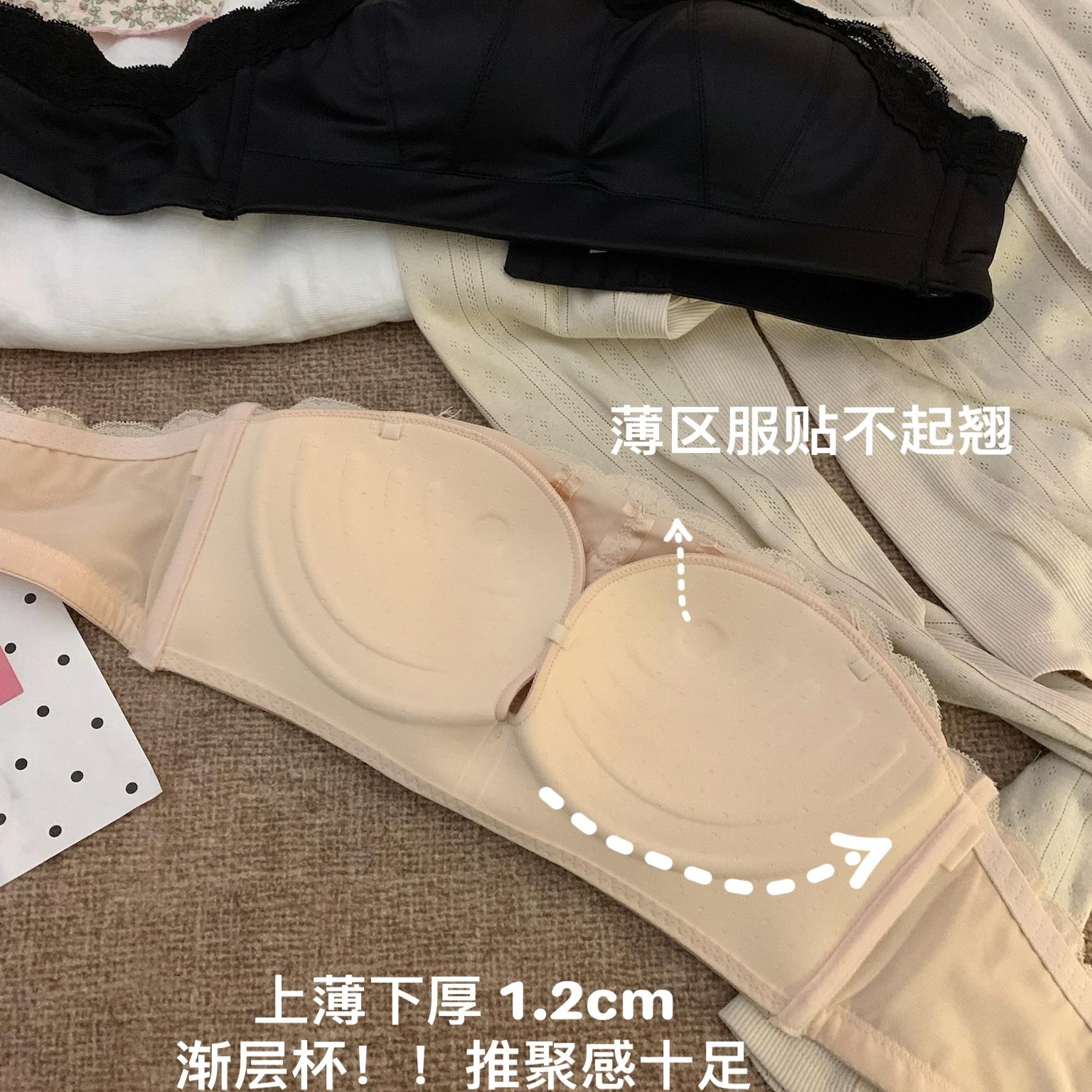 轻奢缎面蕾丝内衣女小胸聚拢半杯性感防滑无肩带抹胸式无痕文胸罩