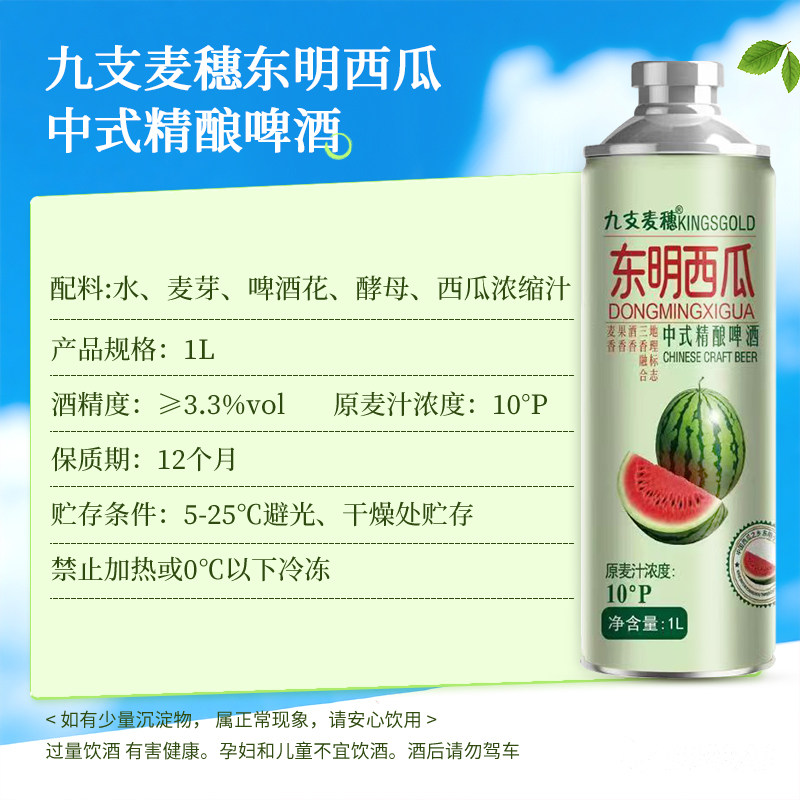 西瓜中式精酿啤酒沁爽原麦汁浓度10°P甄选原料6罐整箱1L果啤饮料