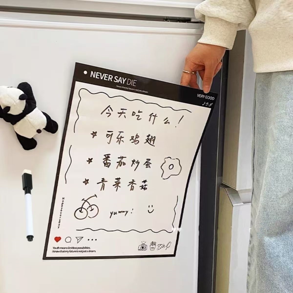 熊猫留言板冰箱贴可擦写记事白板个性创意备忘录装饰贴