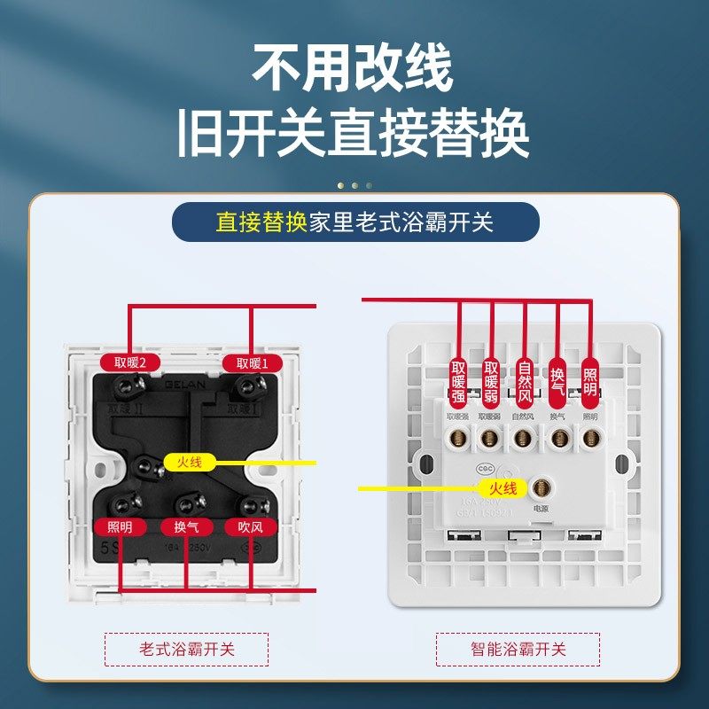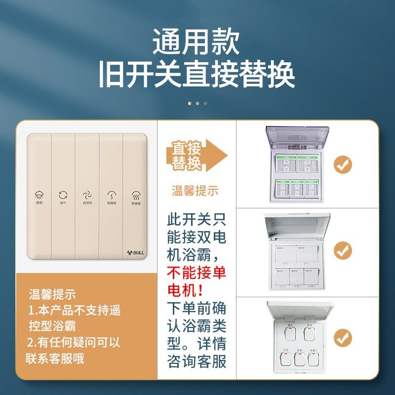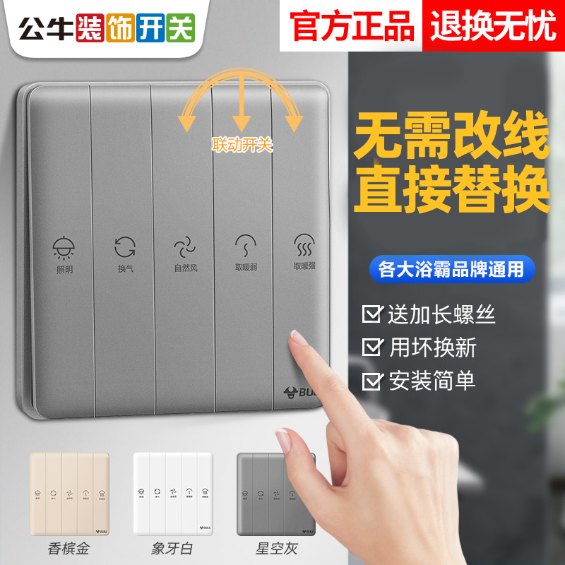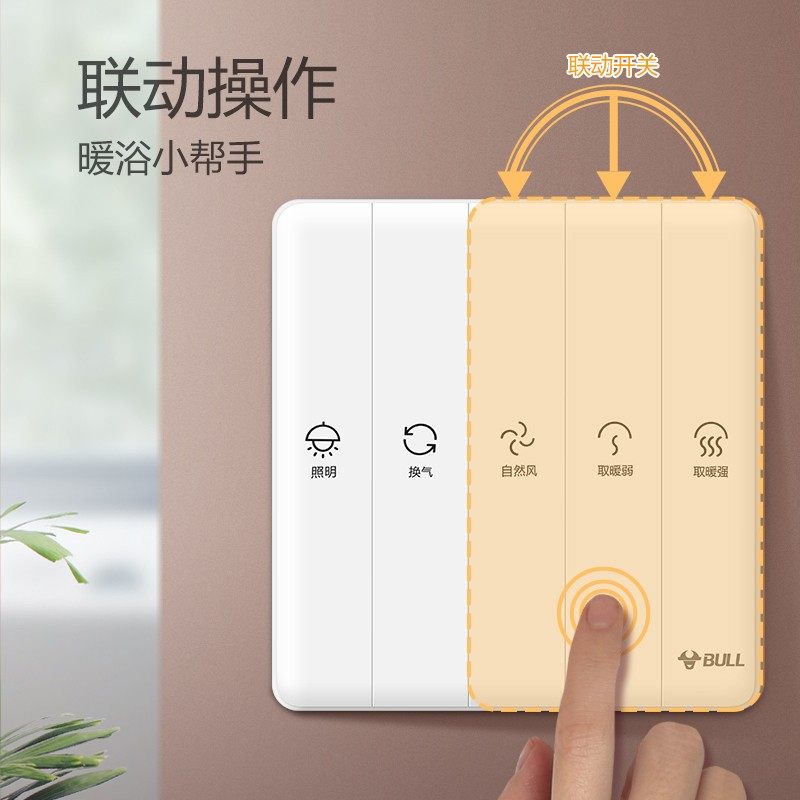 公牛五开浴霸开关风暖5合一开关