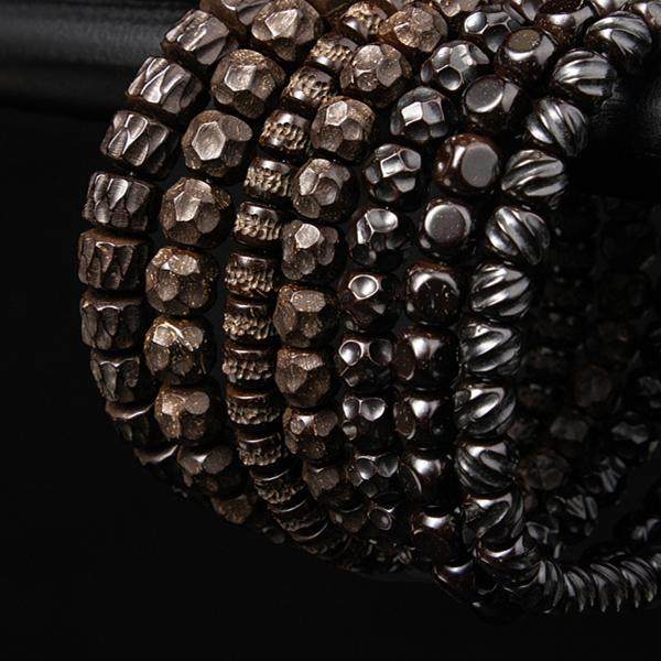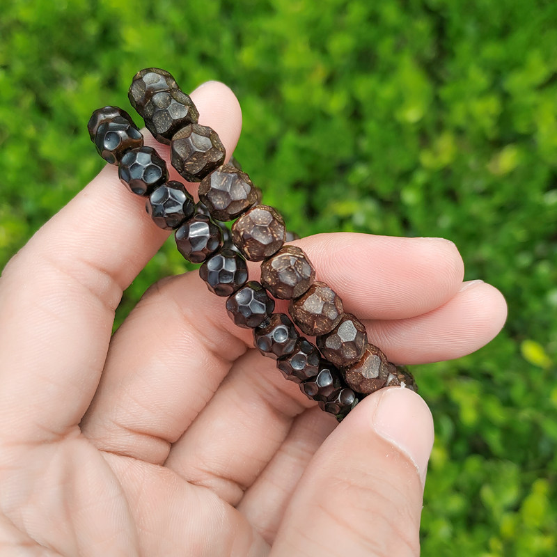 印尼原生态椰蒂手串无相陨石坑单圈奶酪六方佛珠老料文玩手链男女