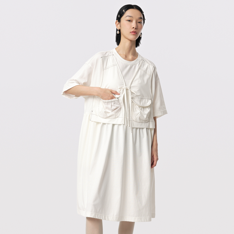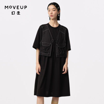 MOVEUP幻走2024夏季新款.FUN系列假两件撞色线设计师针织连衣裙