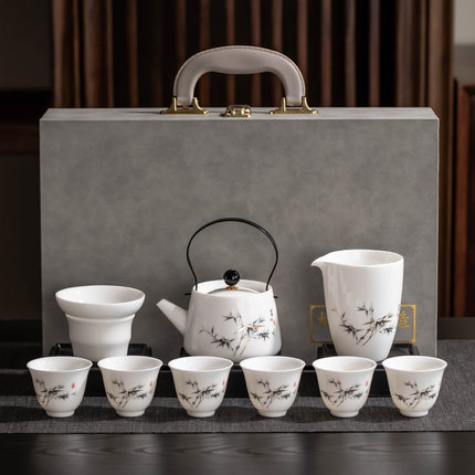 羊脂玉白瓷功夫茶具礼品套装家用高档泡茶壶茶杯节日送长辈礼盒装