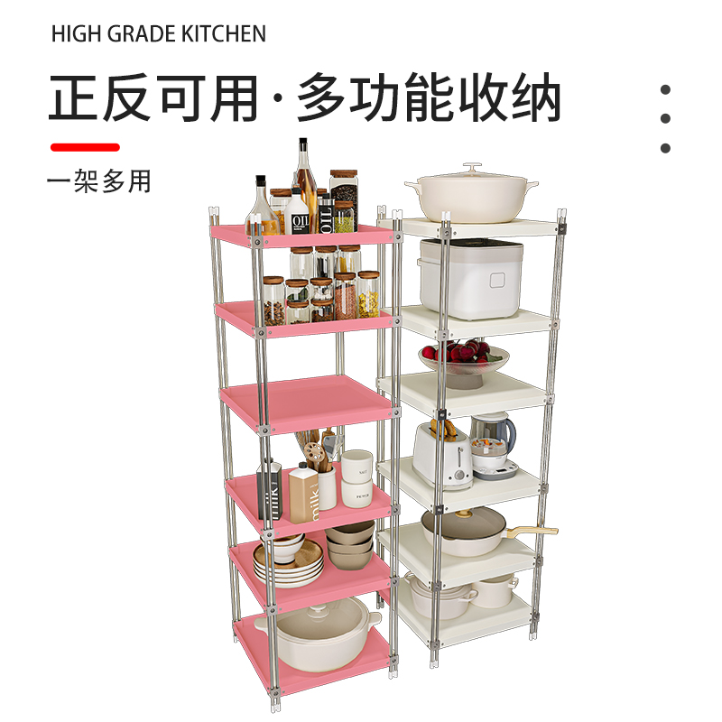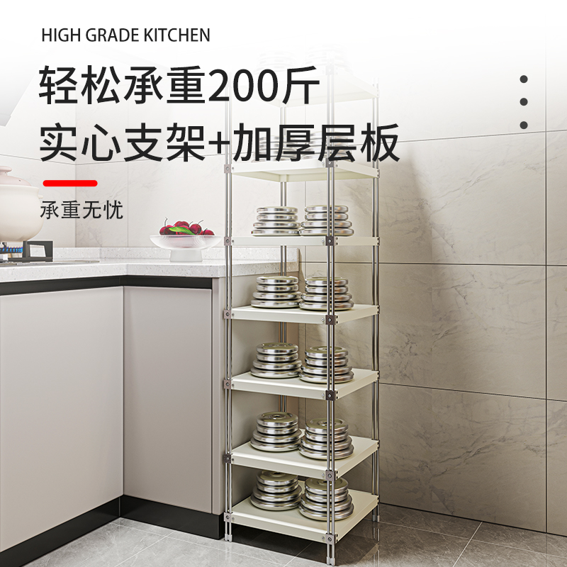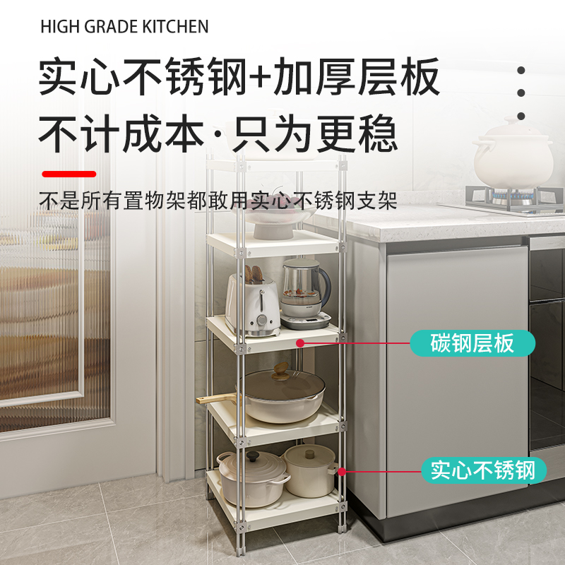 不锈钢厨房置物架落地多层锅架家用放小家电锅具分层收纳架小尺寸