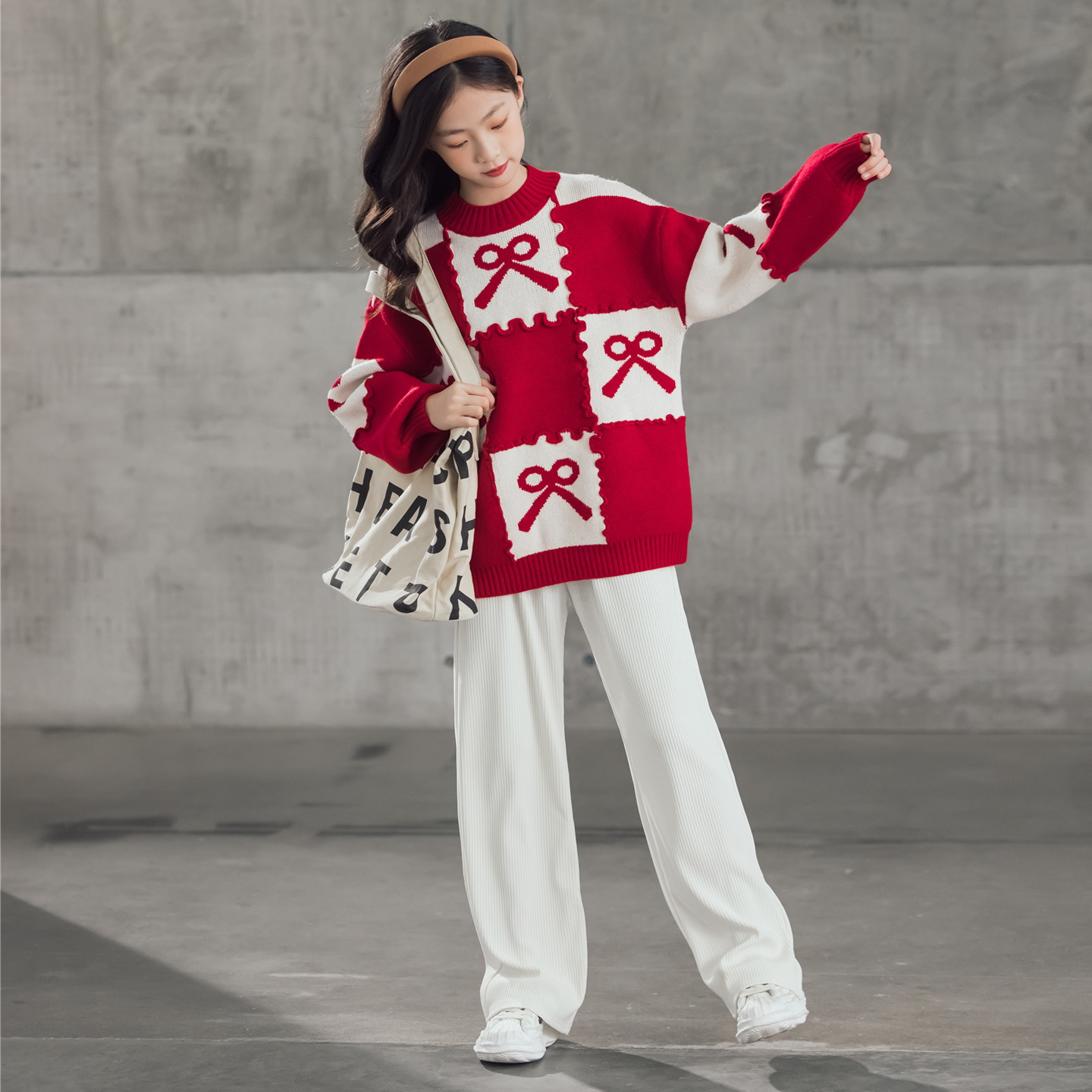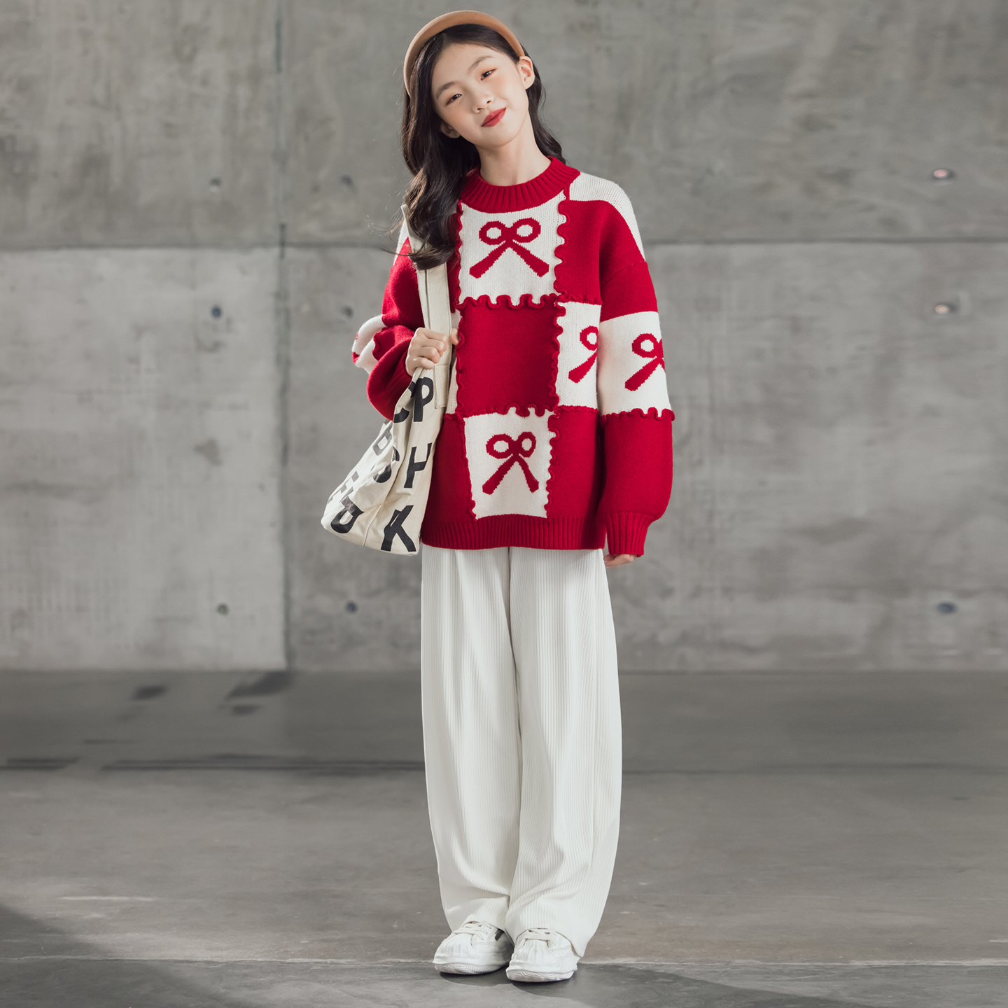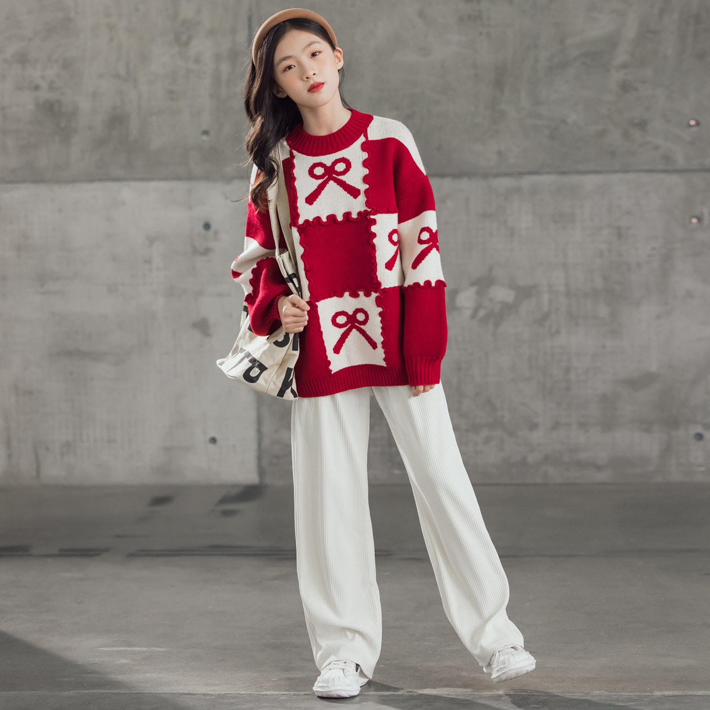 慵懒风圣诞女大童红色秋冬毛衣