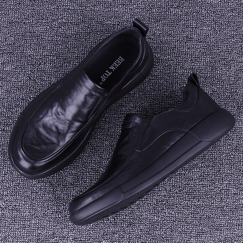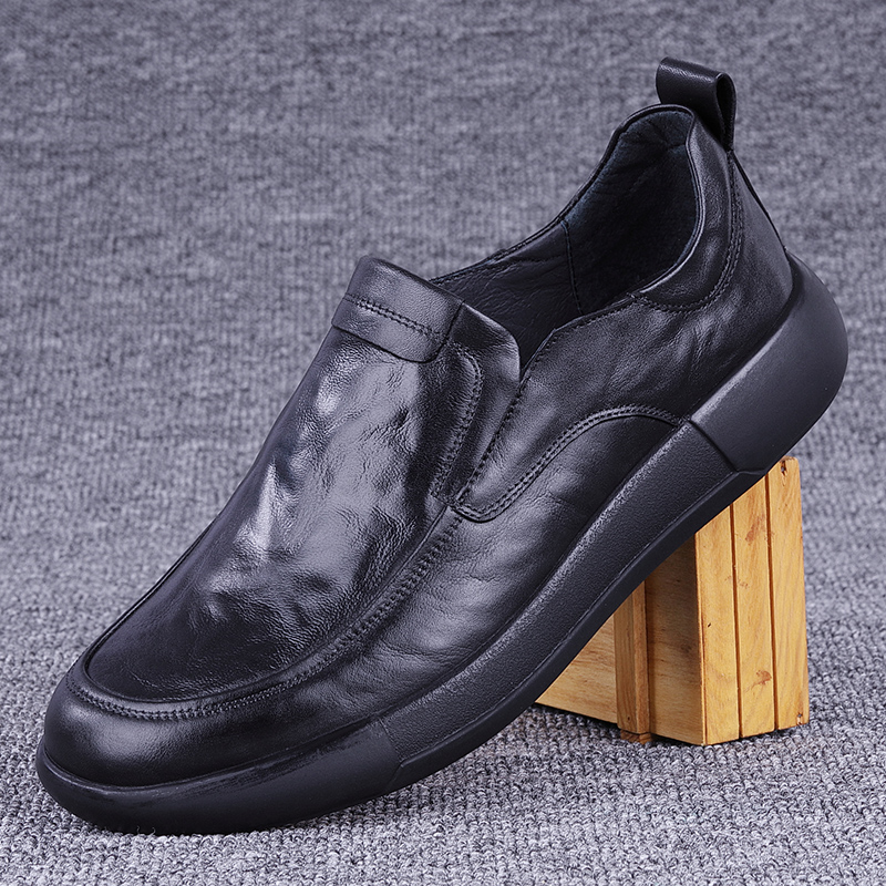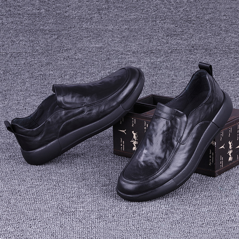 外贸休闲皮鞋男真皮春季新款透气头层牛皮板鞋软底一脚蹬商务男鞋