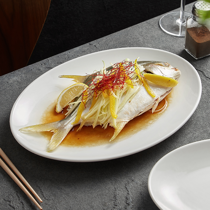 造器高级感精致酒店高端白色陶瓷鱼盘家用2025新款商用蒸鱼菜盘子