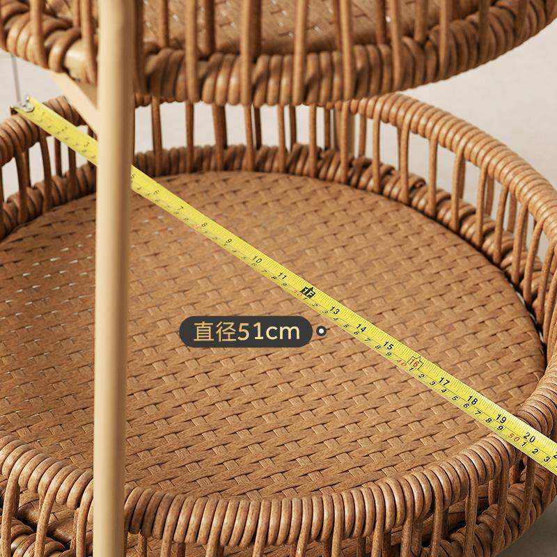 5V曼好家储物小边几户外藤编双层小推车创意收纳床边沙发角几