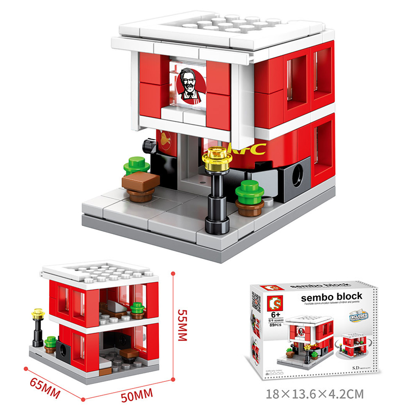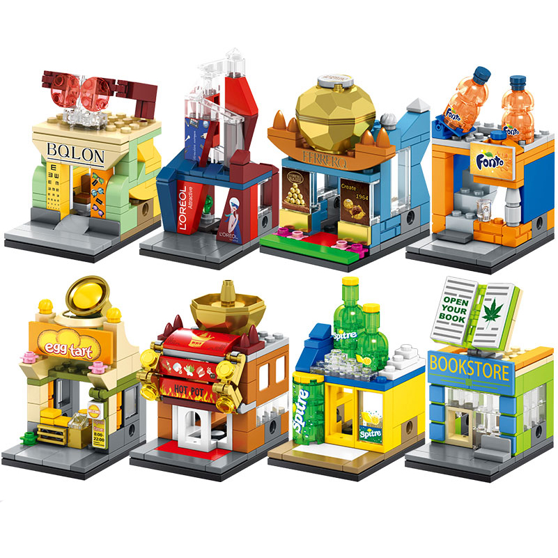 中国积木男孩益智力拼装房子玩具儿童小颗粒拼插迷你城市街景商店