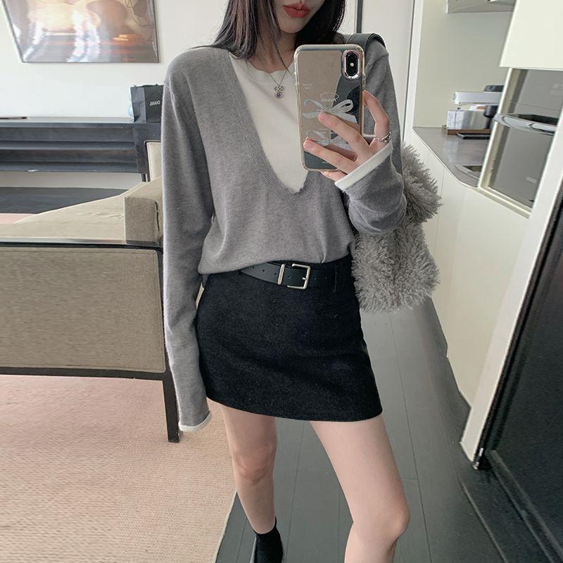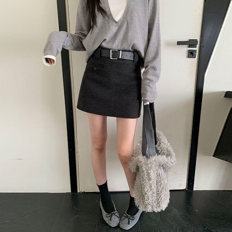 KRO秋冬新款黑色毛呢a字半身裙女加厚高腰防走光包臀西装短裙