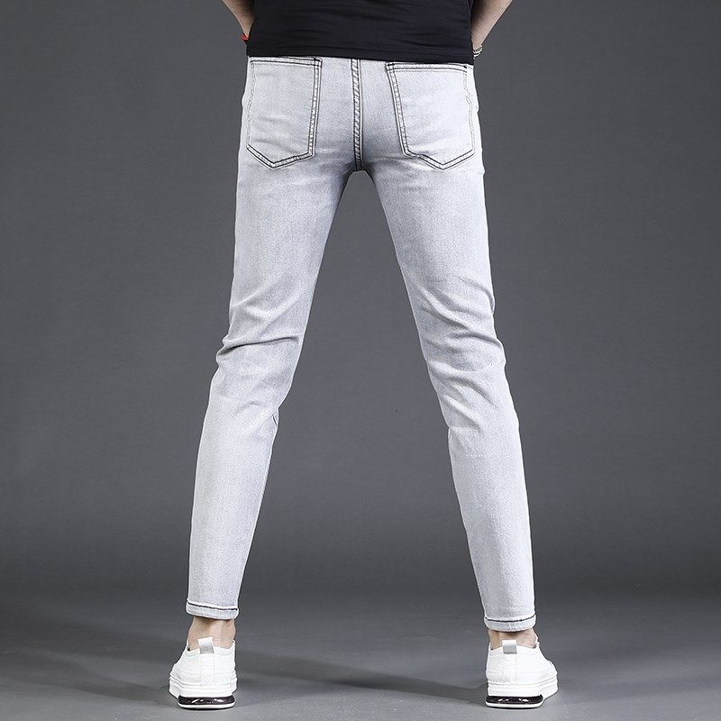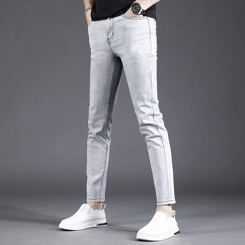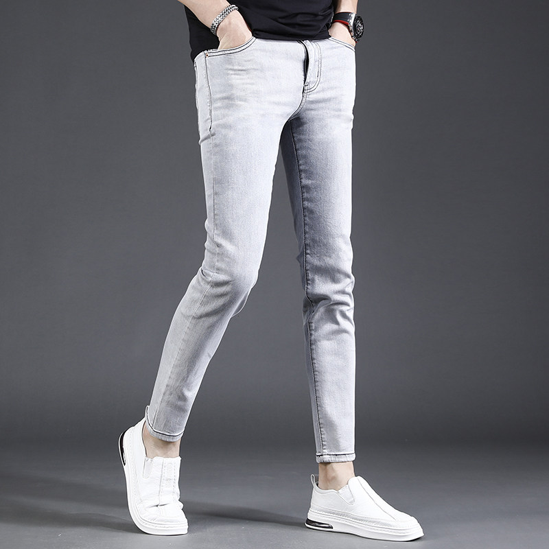 浅灰色九分牛仔裤男夏季薄款修身小脚2023新款弹力休闲裤子男9分