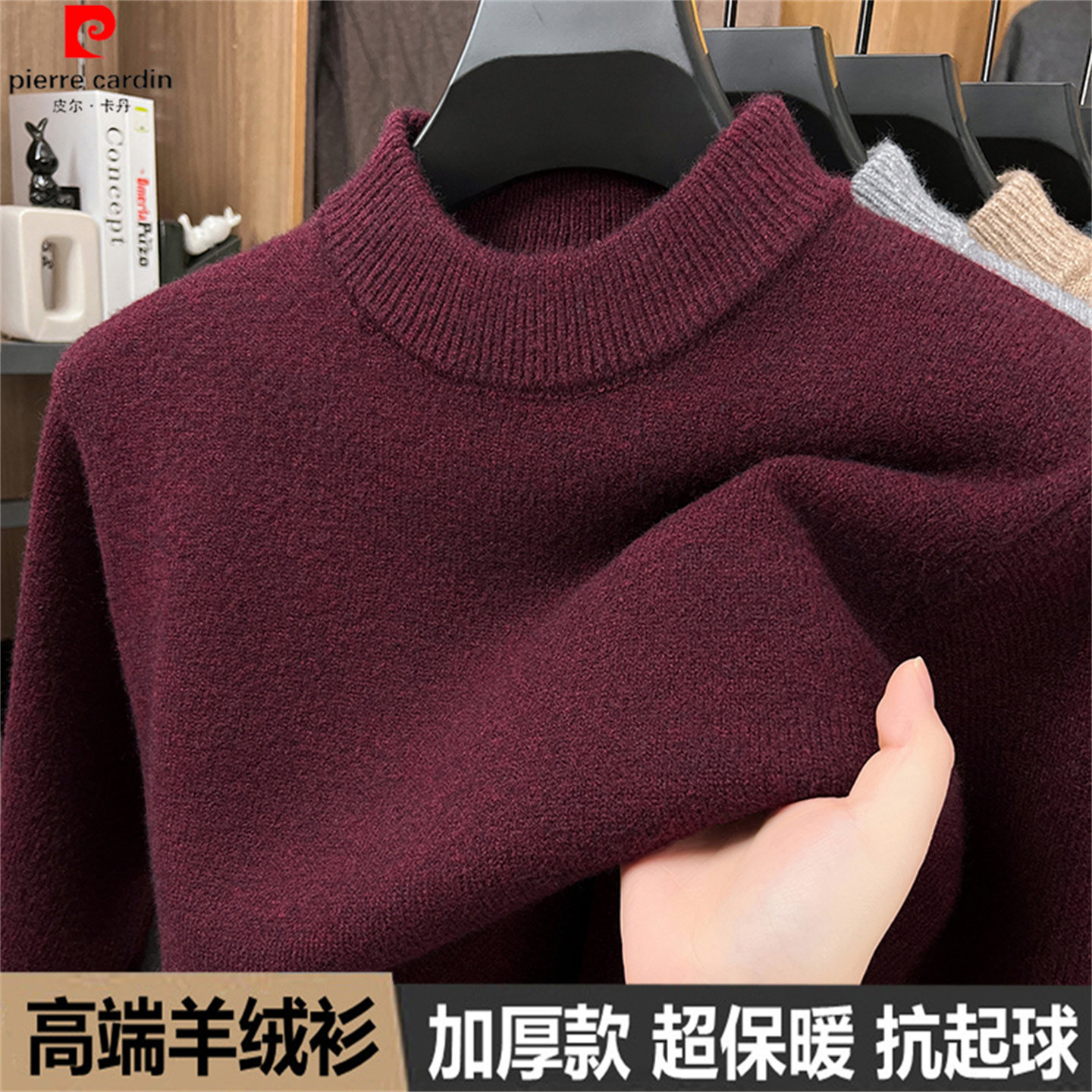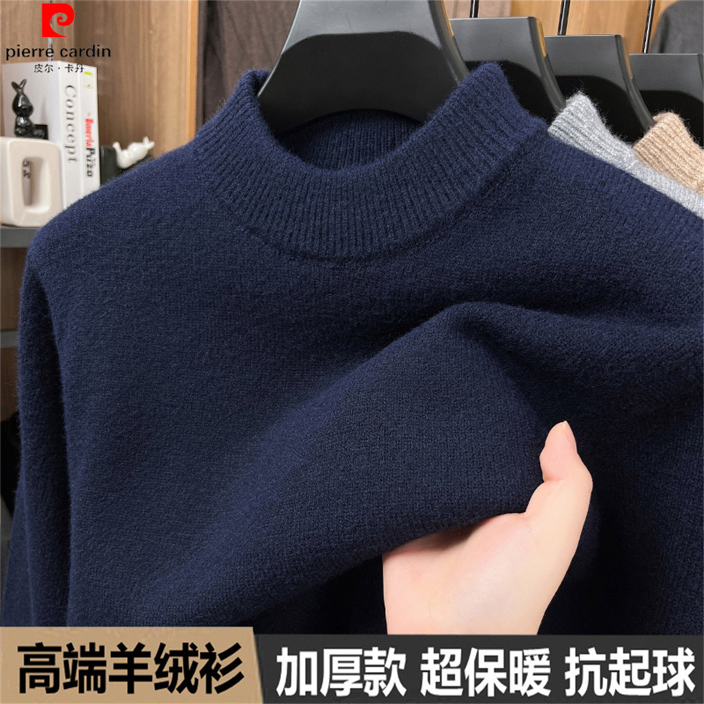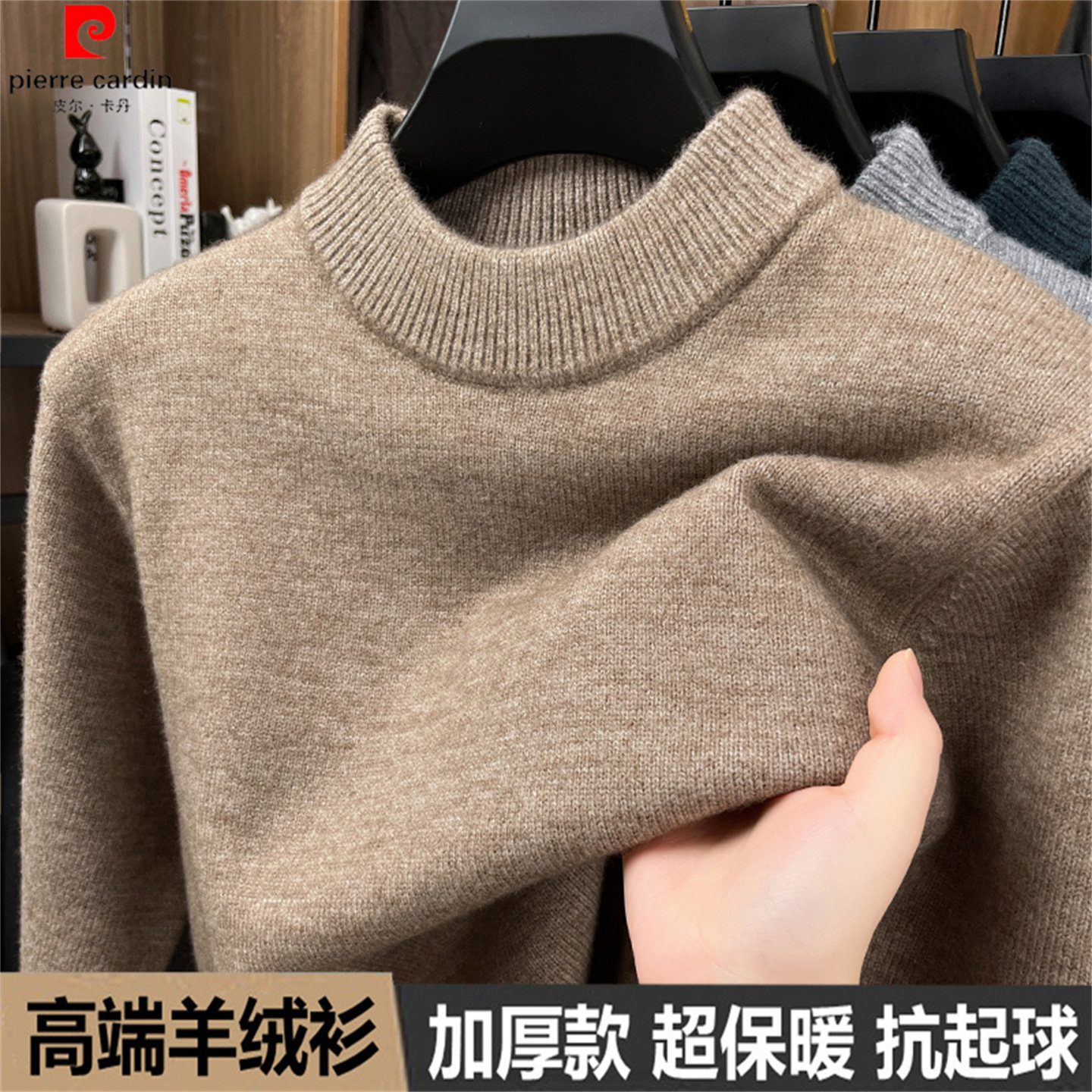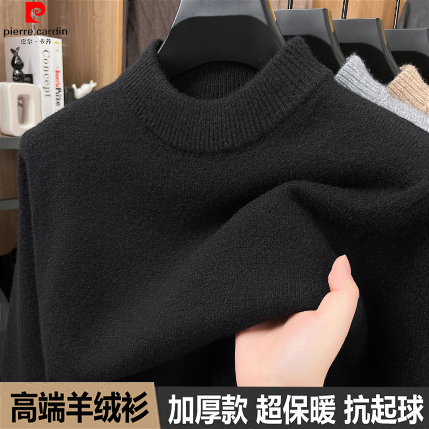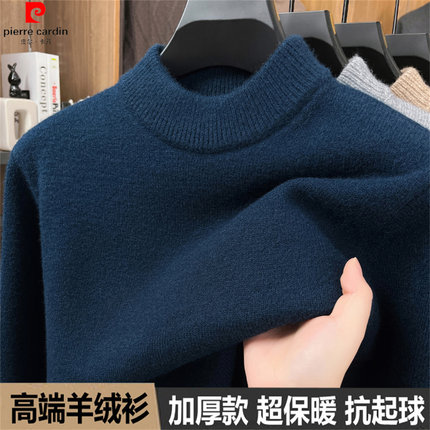 皮尔卡丹高端山羊绒衫秋冬男士新款百搭毛衣半高领针织打底羊毛衫