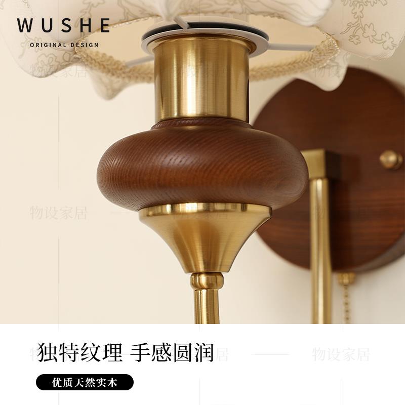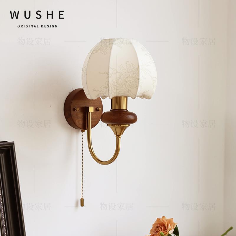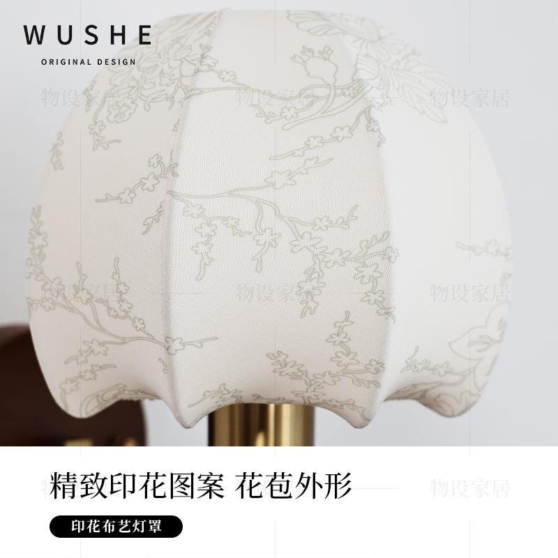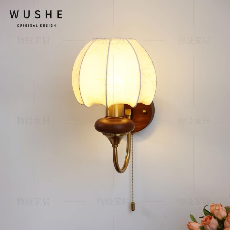 菲罗拉花苞壁灯法式复古中古卧室床头灯布艺客厅带开关过道楼梯灯