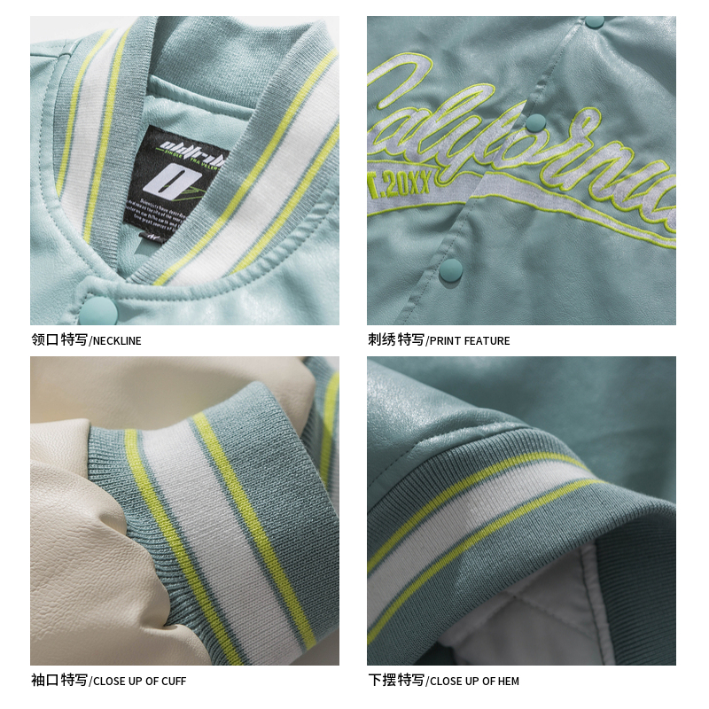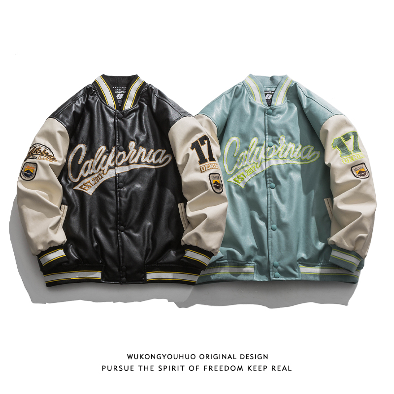 悟空有货美式街头PU皮拼接刺绣棒球服棉衣男潮牌宽松加厚棉服外套
