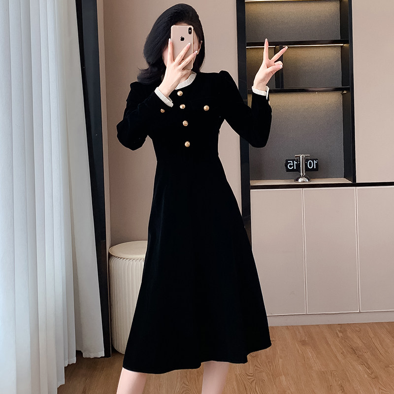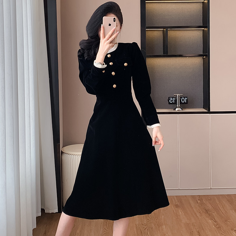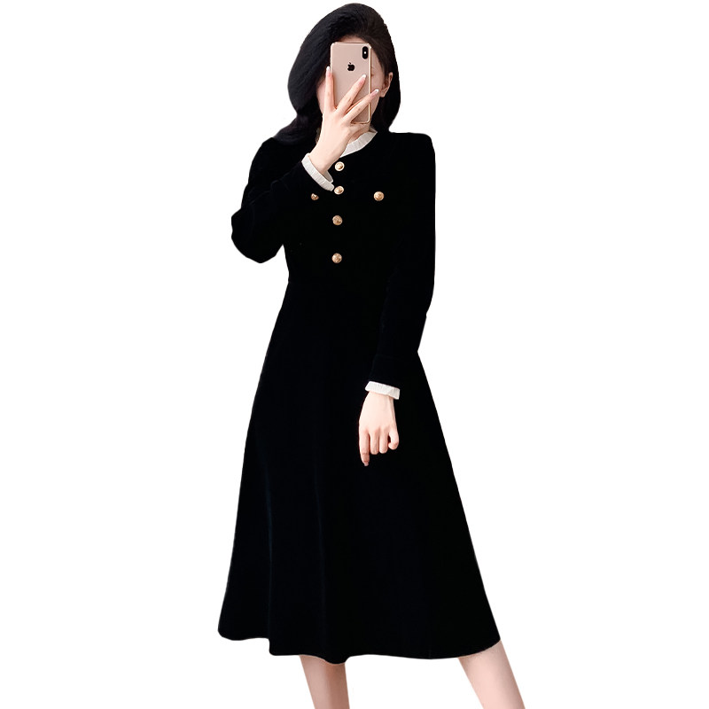 法式高级感赫本风丝绒连衣裙高端精致秋季新款收腰显瘦礼服小黑裙