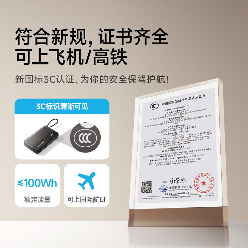 【3C认证可上飞机】MOMAX摩米士70W自带线充电宝20000毫安快充大容量移动电源65W笔记本Macbook快充苹果17用