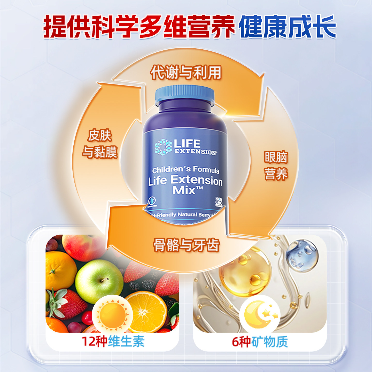 沿寿LIFE青少年复合维生素儿童专注免疫多维综合维生素营养补充剂