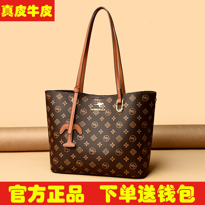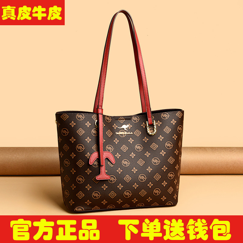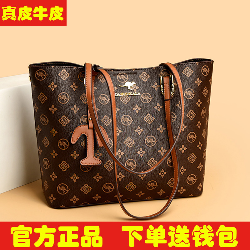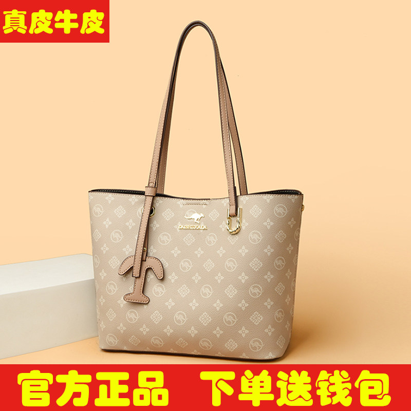袋鼠真皮大包包女包大容量女士单肩包2025新款软牛皮购物袋腋下包
