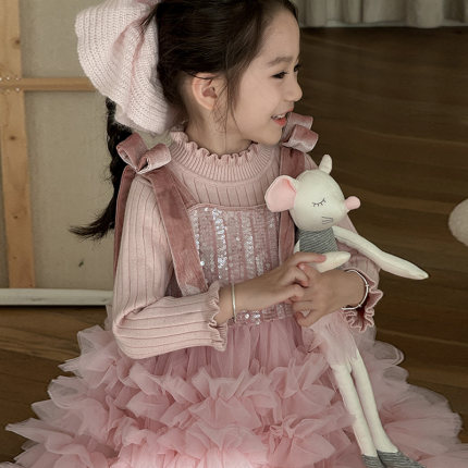 女童连衣裙加绒2025秋冬装新款洋气宝宝亮片网纱蓬蓬礼服公主裙子